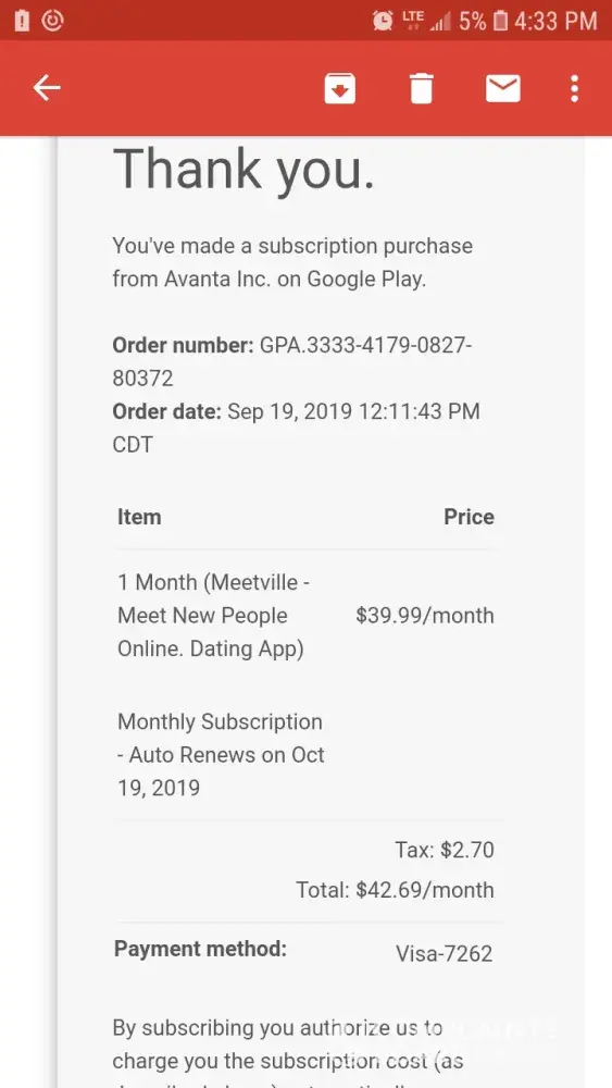 a subscribed it was an unauthorized charge