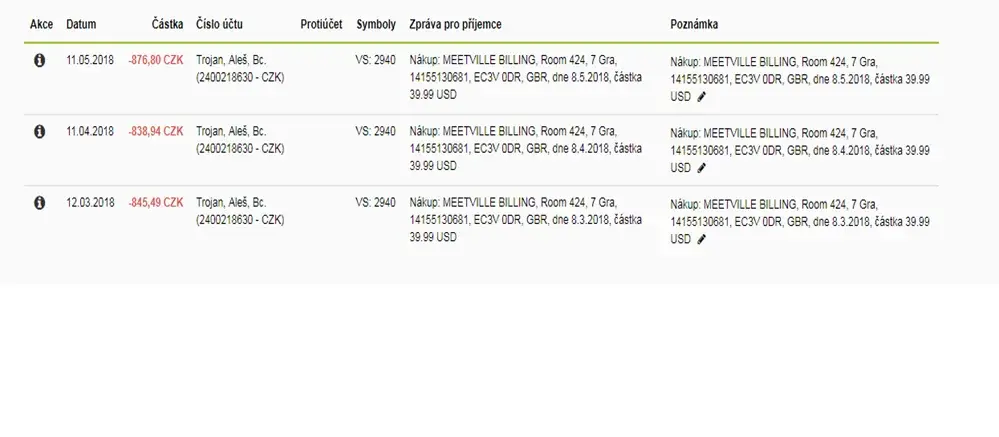 3/12/2018 i payed for meetvile on your website and now i see u charged to me two more transaction from me acct. without me knowledge.