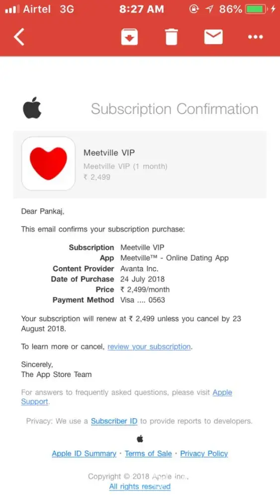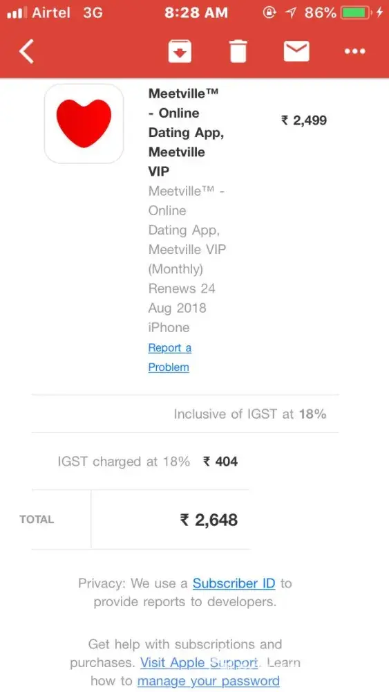 Please take my complaint in consideration and make me the needful, without my authorisation rs.3249 has got deducted for the subscription on meetville app as I didn't got any message or notification regarding this subscription renewal and am in a deep [censored] please provide me the refund, this a big scam done my meetville from norml people like me please provide me the refund amount