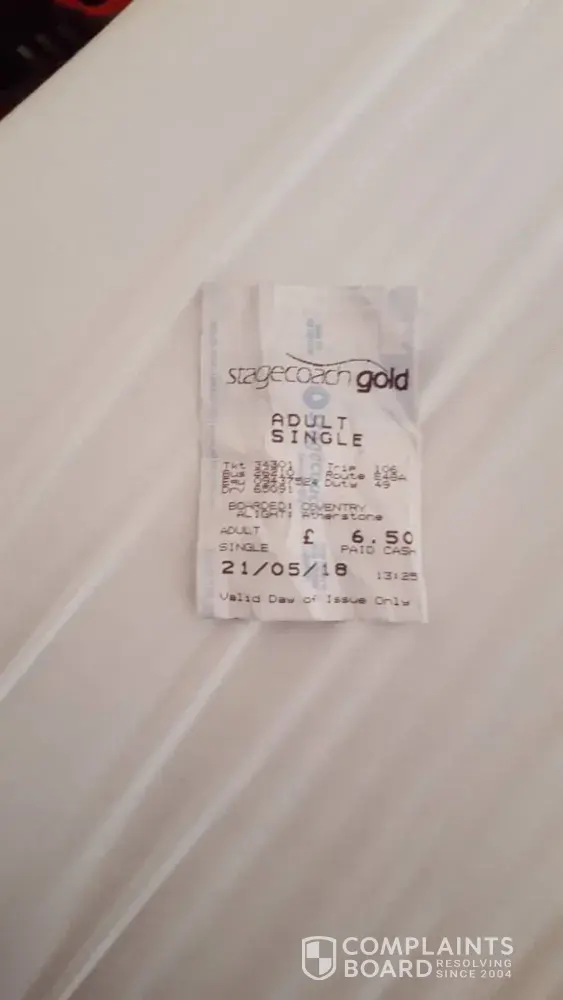When I tried getting on the stage coach from Coventry using the above ticket purchased online on Megabus, as advised, the driver indormed that I could not use that ticket and had to purchase a new one ( on the bus from the driver). I had to buy a new ticket for £6.50 (photo of ticket attached) in order to continue my journey. As I could not use the ticket purchased online on Megabus website from Coventry to Atherstone, due to the coach delay and missed connection, I would like a refund for that ticket, which was around £11- 12. Please issue refund for the origjnal method of payment.