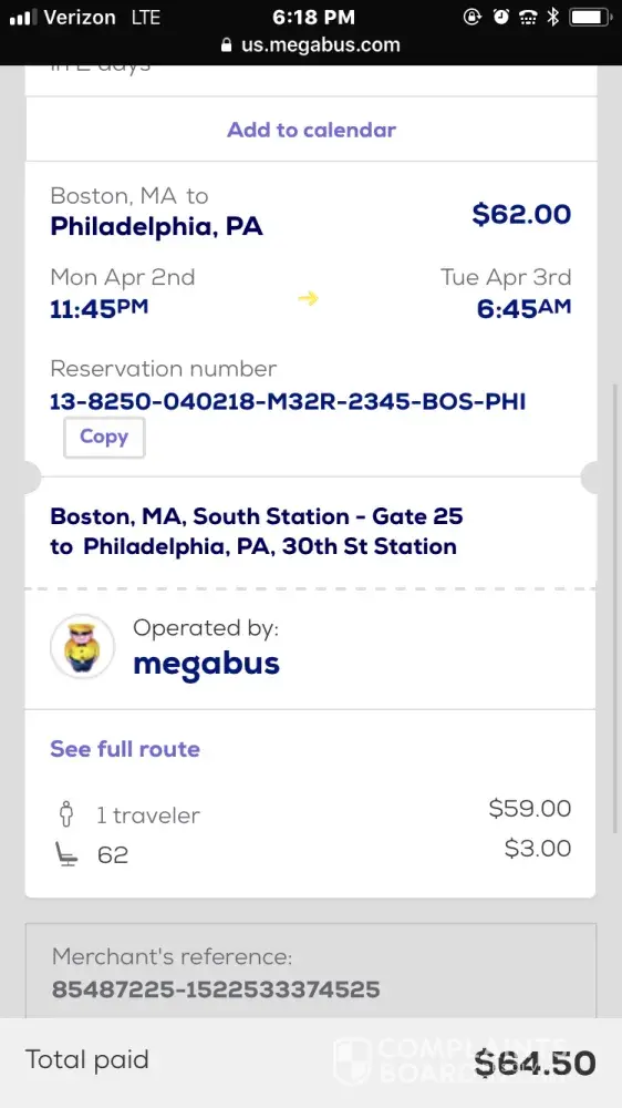 I was forced to purchase a Greyhound ticket for 100.00 to get home. This is after my 64.00 purchase with your company.
