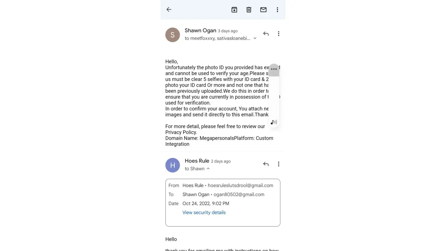 Hello my name is Ms. Eclipse [protected] and I've been posting on Mega personal for years and never had an issue until a month ago since the last time I was able to get into my account, I was asked to do a series of things to verify myself which I did, then I was told there was no issue with my account on there end I needed to send my email and email password so they can verify my email I thought it was odd so I didn't, but I was told that was going to be the last response they were going to send me; and it has a month later my ads are still posted on megapersonals under January 7th 2022 but my account is flagged it does not make since can it be fixed please thank youÂ