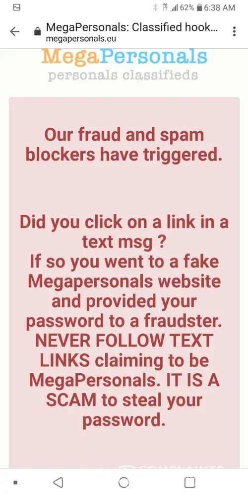 Spam/fraud blockers have been triggered on not only my account but multiple of my friends accounts as well recently. We are all in different areas & have not accidentally followed any spam links nor have we used any type of vpn with megapersonals...