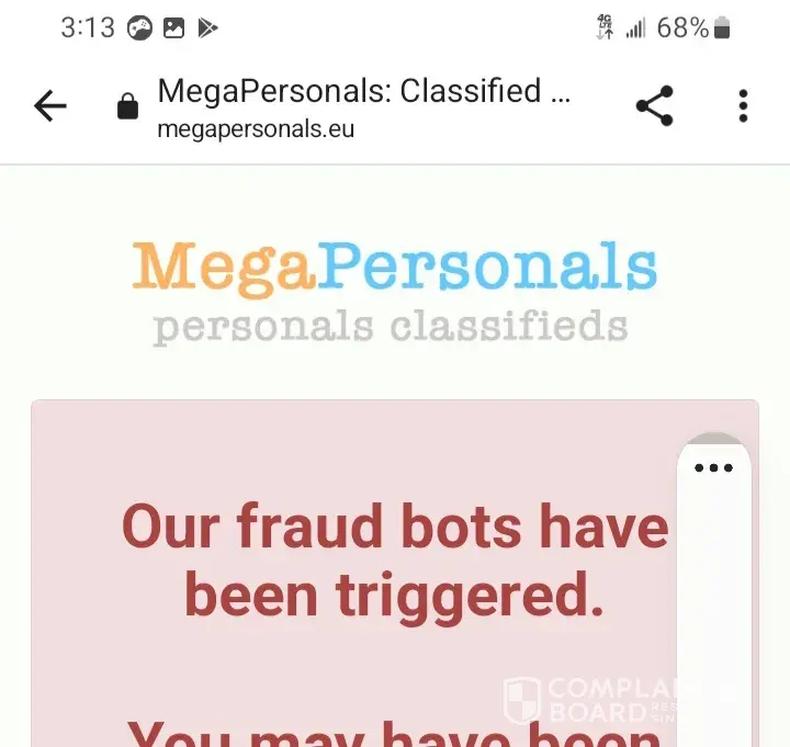Read full complaint and 4 commentsYes, MegaPersonals.com is a legitimate platform designed to facilitate personal connections.