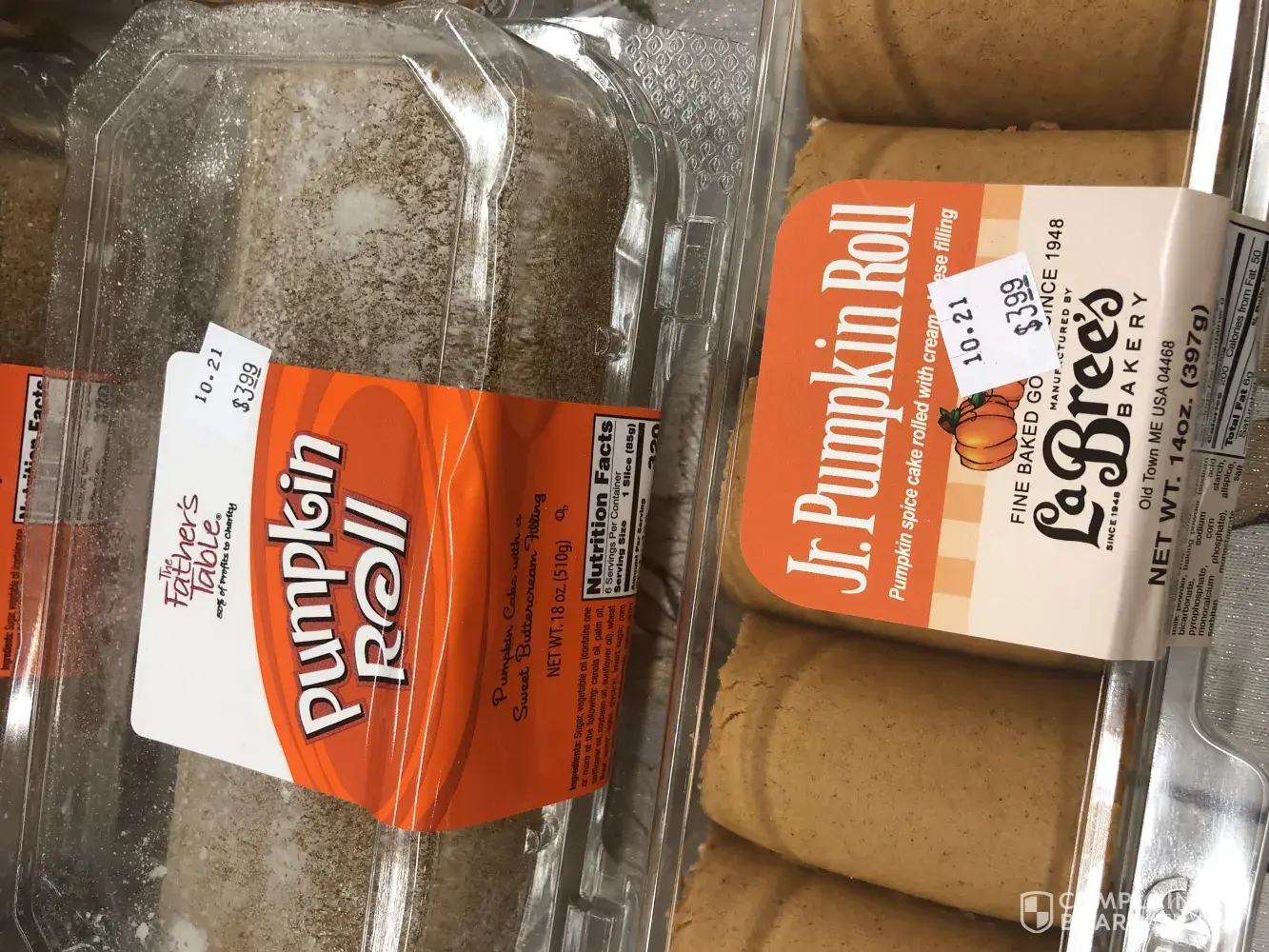 The one pic is of the year round product Meijer carries, the chocolate rolls. The other one is the BS they decided to stock for fall rather than just order the pumpkin version of the damn product they already carry.