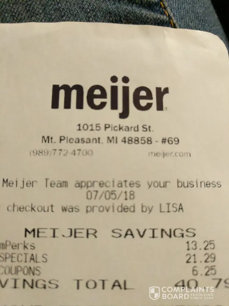 I went shopping on Thursday afternoon at Meijer in Mt Pleasant and the cashier was very rude. I had pop, dog food, cat litter and potatoes in my cart and I was lifting them out for her to scan (instead of having to walk around) and she kept saying "other side" as I did not have the barcode up for her to scan. The tone she was giving was not nice. Then she bagged my bathroom cleaner, and tide pods in a bag with food. I honestly just wanted out of there. I rebagged it myself. She only became pleasant when handing me my receipt. Name on the receipt shows Lisa.