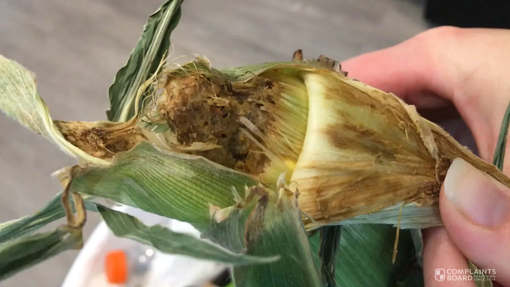 I went I meijer groceries on alpine road. I shope there regularly for my groceries and everyday household needs. We spent around 354.00 that day. A lot was meats and produce. I got home around 8pm. I ha plans on cooking a burger, corn and potatoe sald. I was getting ready to shuck my corn and there was maggots.( little worm creature) inside of the corn. All my prduce was mixed together so I decided to throw it all out. It's obvious that the corn grows out side, however I thought these were inspected a little better before they were put on the floor.
