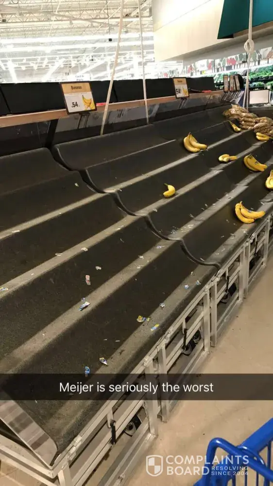 I am a frequent customer at the Meijer in Royal Oak, Michigan. Before the renovations, I have to admit, the place was terrible. Then during and right after the renovations things seemed to be looking up. I noticed new faces, which I assume were from other places making sure everything was running smoothly. However, slowly it has gone down hill back to the way it was before the renovations. It is dirty, it is a mess, the produce is always old and the produce is always scarce. Along with these issues, it seems no matter what day I go, the things I need aren't stocked or available. I like to go to Meijer because it is a one stop shop, and I use my Mperks for diapers. Unfortunately for the past month, I have been unable to get his Pampers Swaddlers in a size 6 because they are always out of them. I can't even count how many times I have to run somewhere else because Meijer does not have them stocked. Not only that but they only have the small boxes when they do. In all honesty I would say four out of five times I have to go to another store a different day to finish my shopping list because Meijer doesn't have what I need stocked. You are probably wondering why I keep going back with all of these issues. The answer is Mperks. I save a lot of money with it. I recently complained to my friends and family about it and most of them say, "that Meijer is the worst!" I am not writing to complain for no reason, I am writing to make you aware that soon after the renovation, the Royal Oak Meijer has reverted back to its old ways. I feel the people who were there during the renovations would not be happy with this. All that money was spent to turn the place around and for a while it was, but not anymore. I attached a few pictures from my shopping trip last week. I am going to apologize in advance for the captions because I was sending them via snapchat to my sister. These pictures aren't just a one time thing. This happens more times than not. The picture with the paper towel on the floor is because I watch an employee walk right by it. Myself and another customer picked them up.
