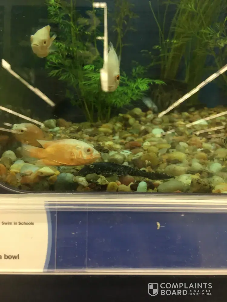 You should be ashamed to sell fish. The tanks are all filthy and multiple fish have ick. Some of the fish shouldnt even be kept together due to their aggressive nature towards other breeds of fish. There are multiple dead floating fish in tanks and fish that are injured. Fish are animals to and deserve to be kept in proper enviornments and not in filthy tanks where they sit at the bottom dying or float dead at the top.