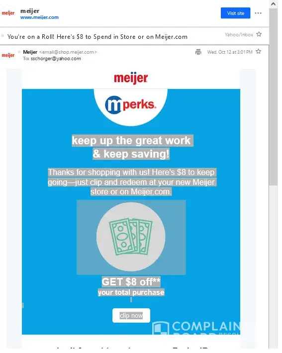 keep up the great work & keep saving! Thanks for shopping with us! Here's $8 to keep going—just clip and redeem at your new Meijer store or on Meijer.com.