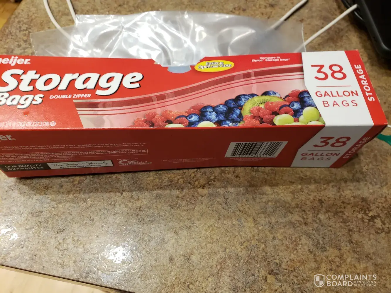 Gallon storage bags leaking immediately, defective. All leaking at corner(seam). Made a complete mess of fridge. Only one bag did not leak.