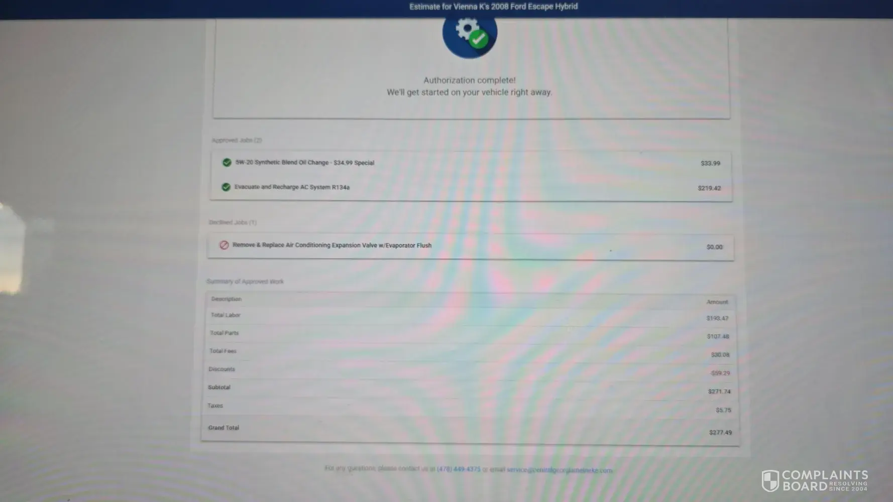 I am writing to formally express my dissatisfaction with the service I received at Meineke Car Care Center #584, located at 78 West Mercury Blvd, Hampton, VA 23669. I took my 2008 Black Mazda 3 to your shop for a free A/C check and was assured that it would be a visual inspection. However, my experience resulted in unauthorized and unnecessary repairs totaling $853.65, which failed to resolve the original issue of my A/C blowing warm air.
