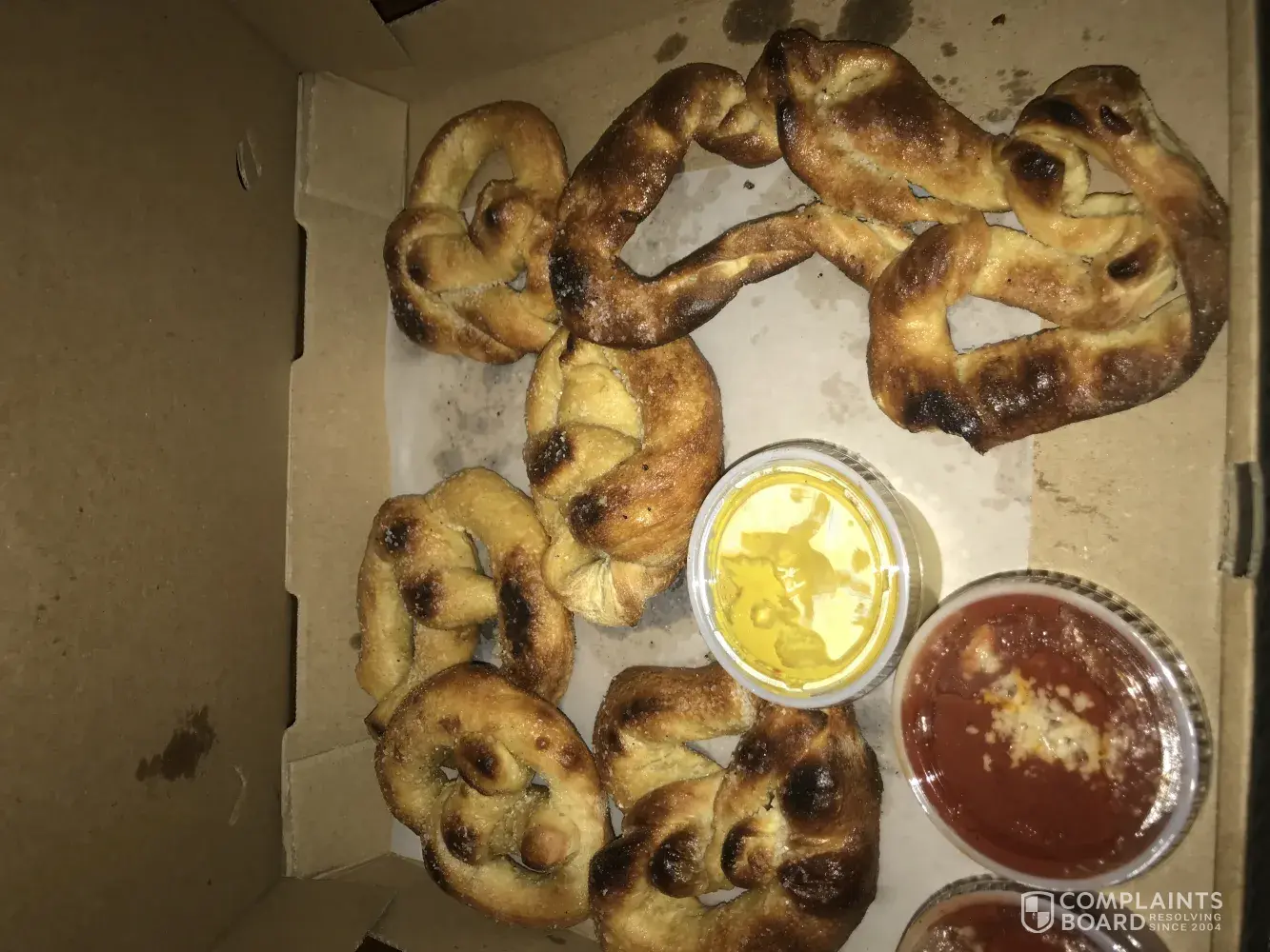I ordered a full serving of pretzels and received deformed and burnt pretzels. I didn't realize this until I got home because I was not shown the contents of the box. They should be ashamed to charge money for these! Mellow mushroom pretzels are my favorite but I'm very disappointed after this and will likely not return. It seems the quality of their service and food is not what it used to be. Such a waste of money!