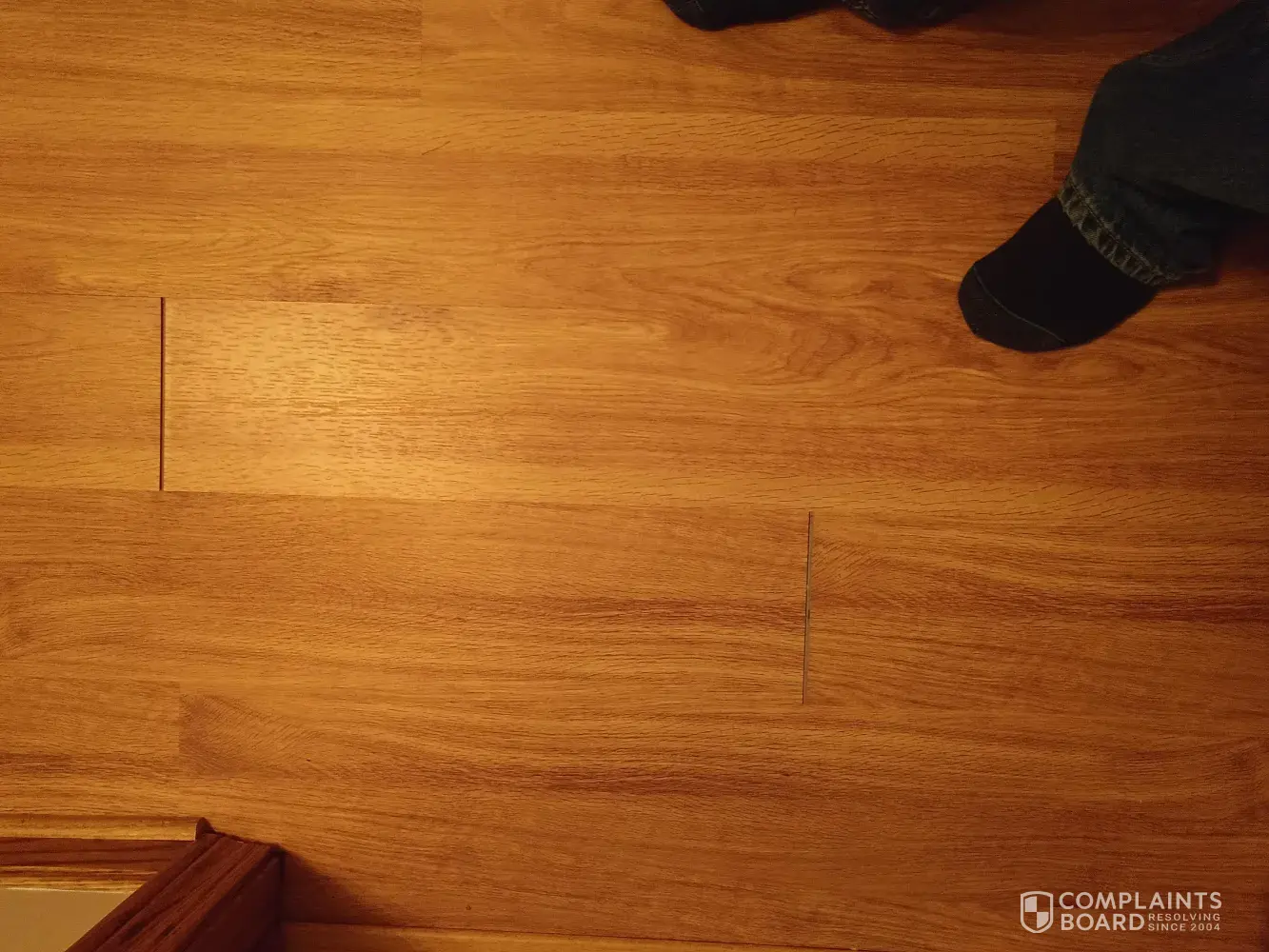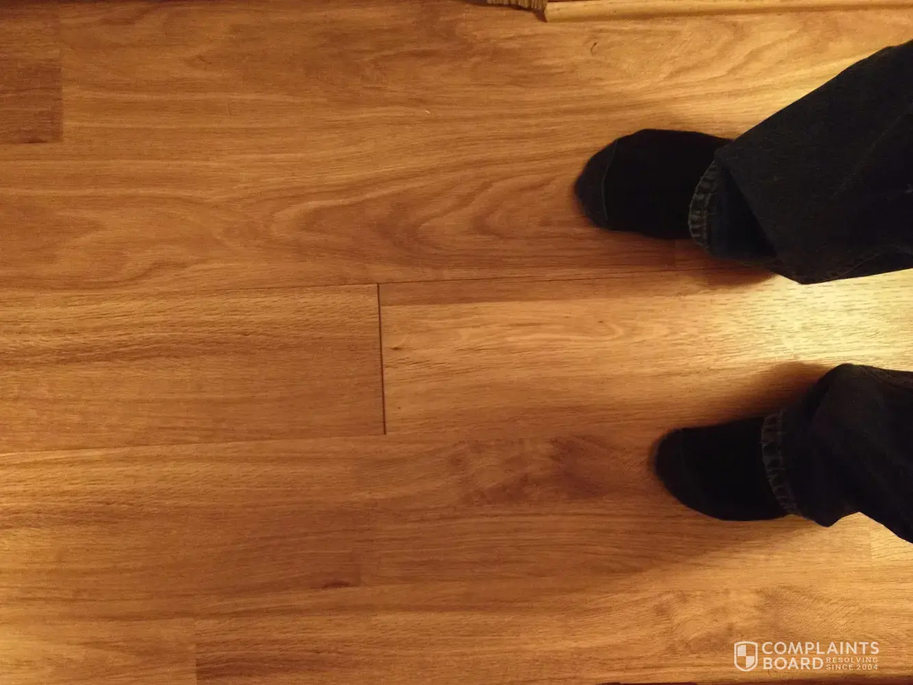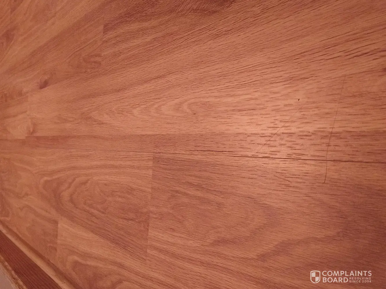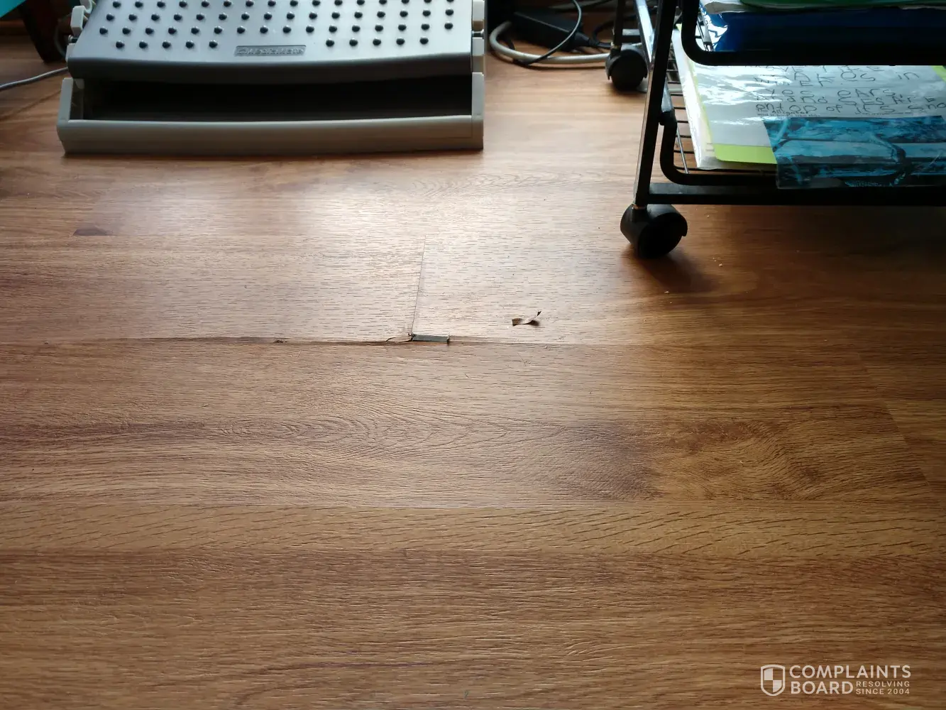 This floor was installed in November 2019. After less than a couple of months, one section had corners coming up and separating where a desk and chair was sitting. Not it is less than a year later. I will let the photos tell the story. If you look closely, you can see the separations that are only just beginning.