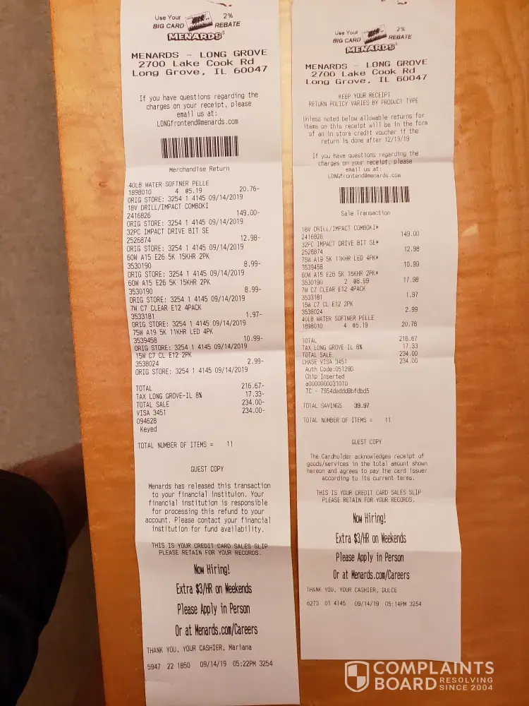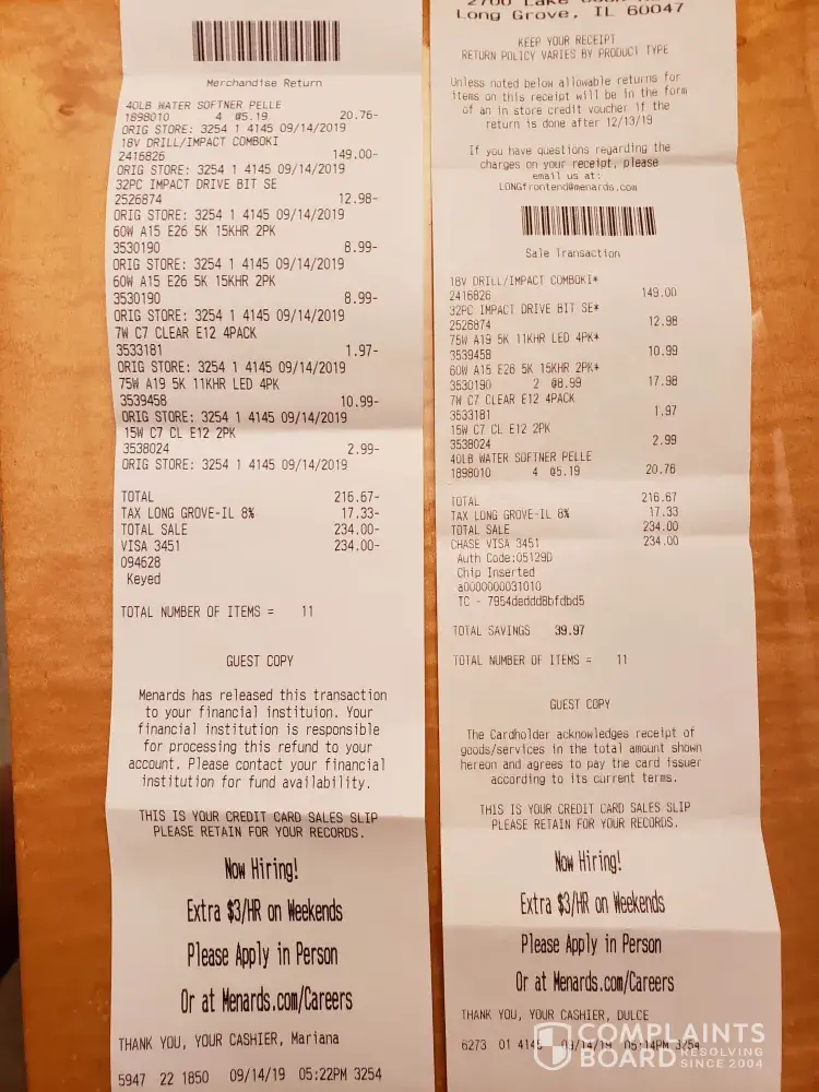 I want to file a major complaint with my Menard's experience today. After purchasing $234 worth of goods and as I was walking out, some Hispanic Menard's employee stops me and grabs a bundle (about 10) of small plastic bags that I had placed inside the cart then accuses me of stealing the bags... I told her I grabbed the bundle of plastic bags because the 4...