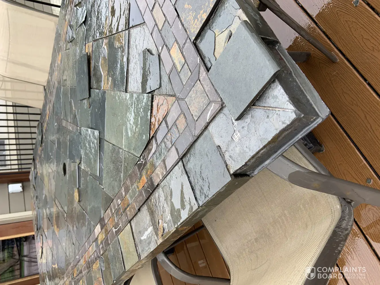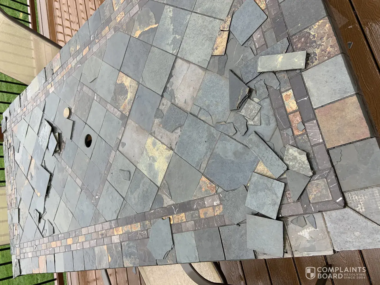 We purchased a Backyard Creations Patio Table just a couple years ago from Menards. The stone on the top of the product immediately started falling off. This summer it got way worse and the table is no longer even functional because so many tiles are missing. If I recall this table cost us $600-$700. Is there anything that can be done at this point? I am...