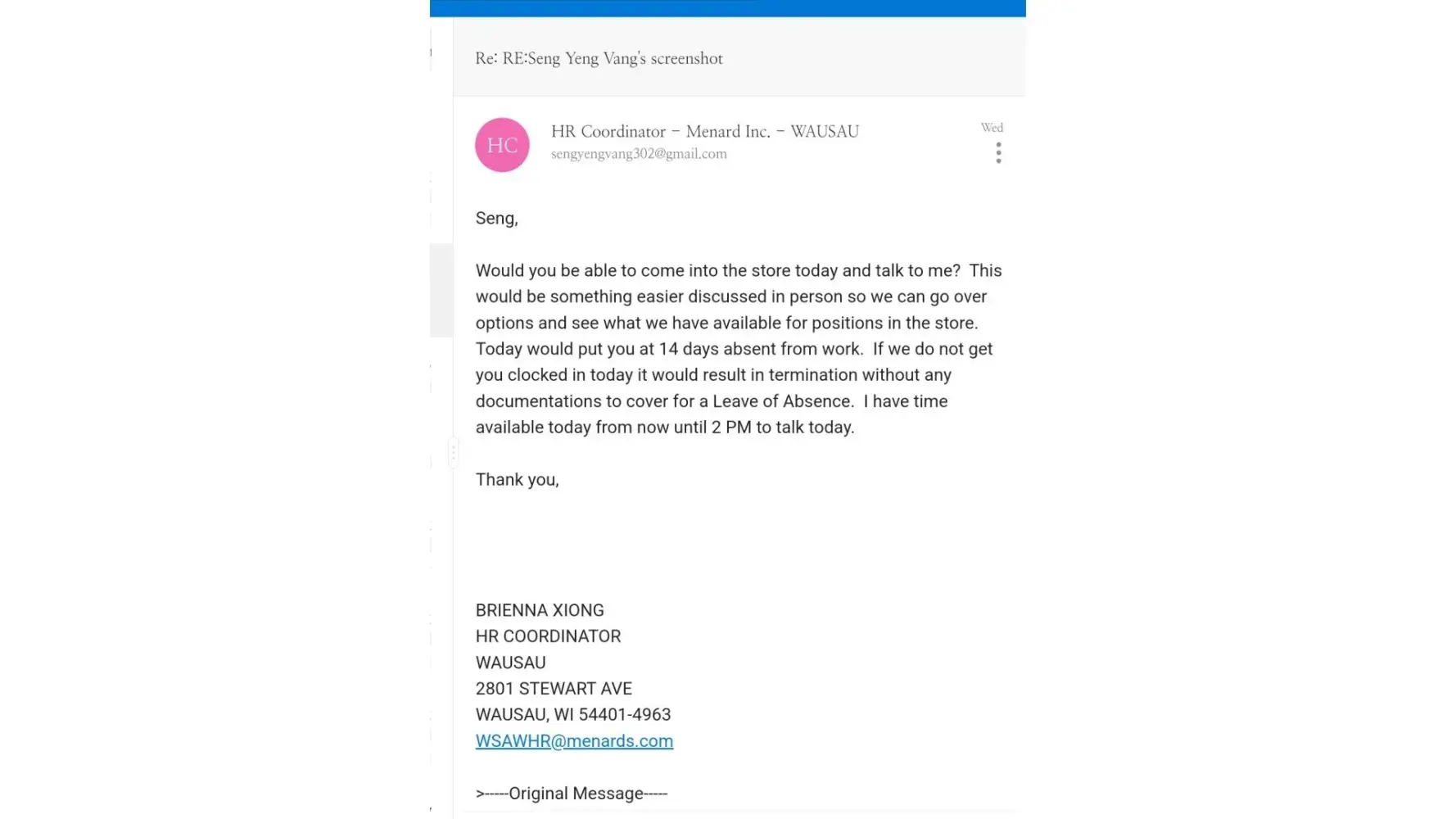 "...well didnt you have the time to call us?" I am appalled by the behavior and I just said no. I couldn't because I was dying. Likewise, menards don't have the same values for someone's life. They don't pay for covid leave and I went home crying when their only solution was to transfer me to stockings. Absolutely racist as I'm the only Asian there which is I assume why the supervisor reacted that way. H.R and manager didn't apologize when I told them of the incident, I knew they acknowledged who it was and wished to keep her instead. If she didn't care about my life, I'm sure she's done some things too.