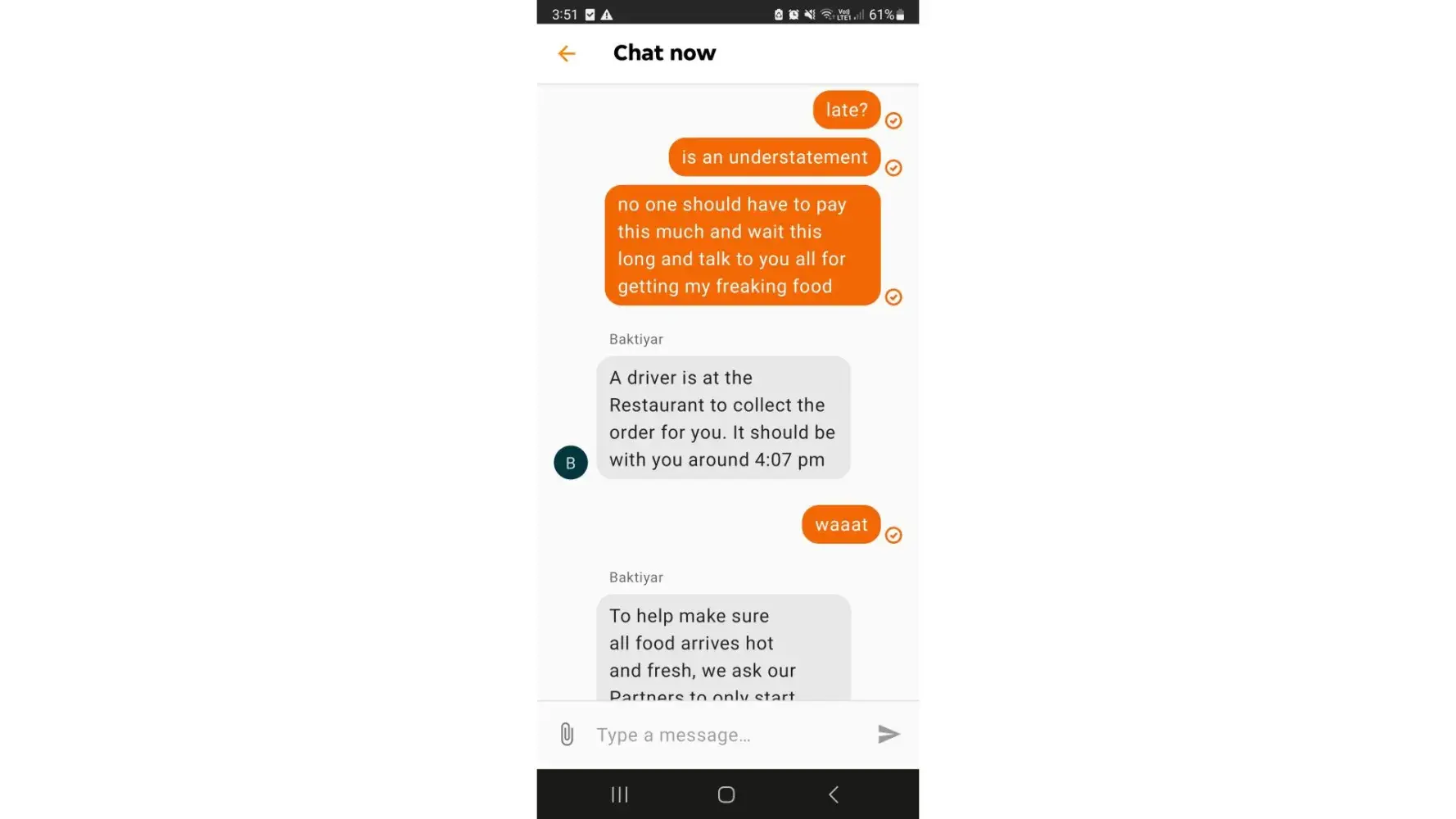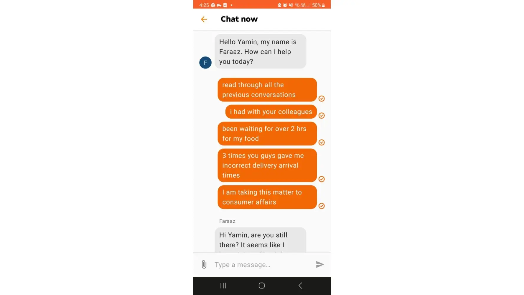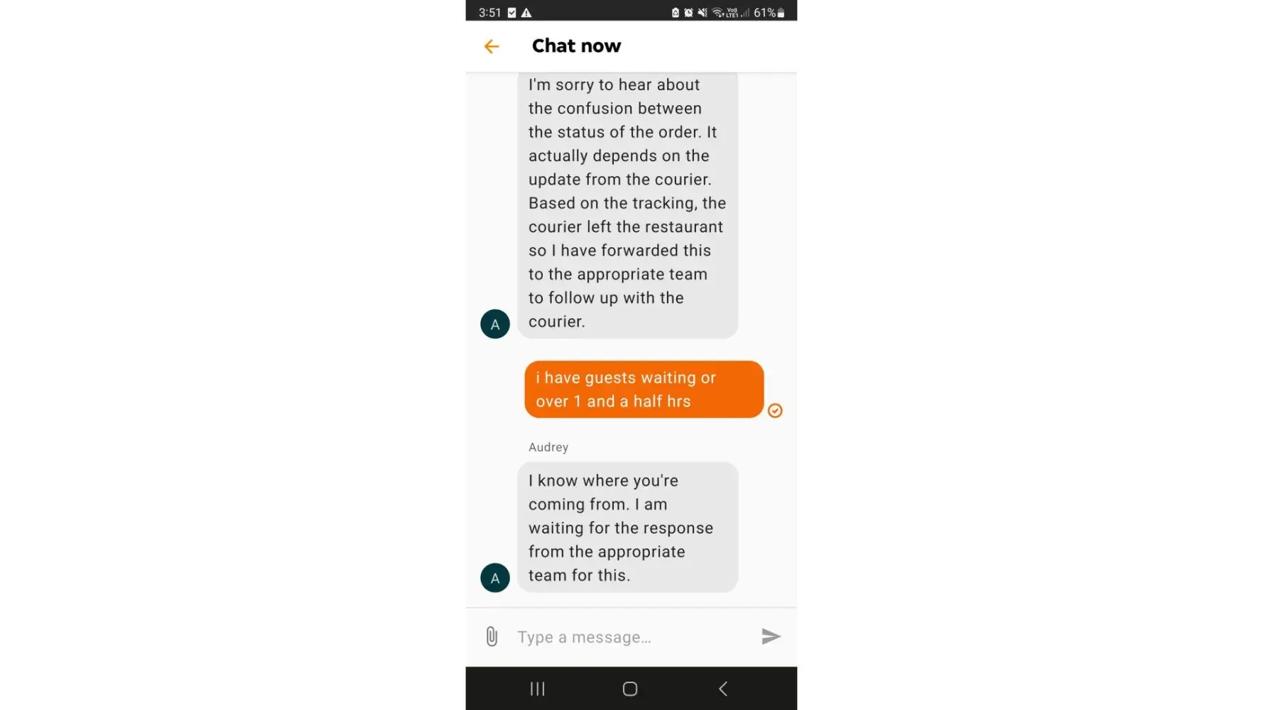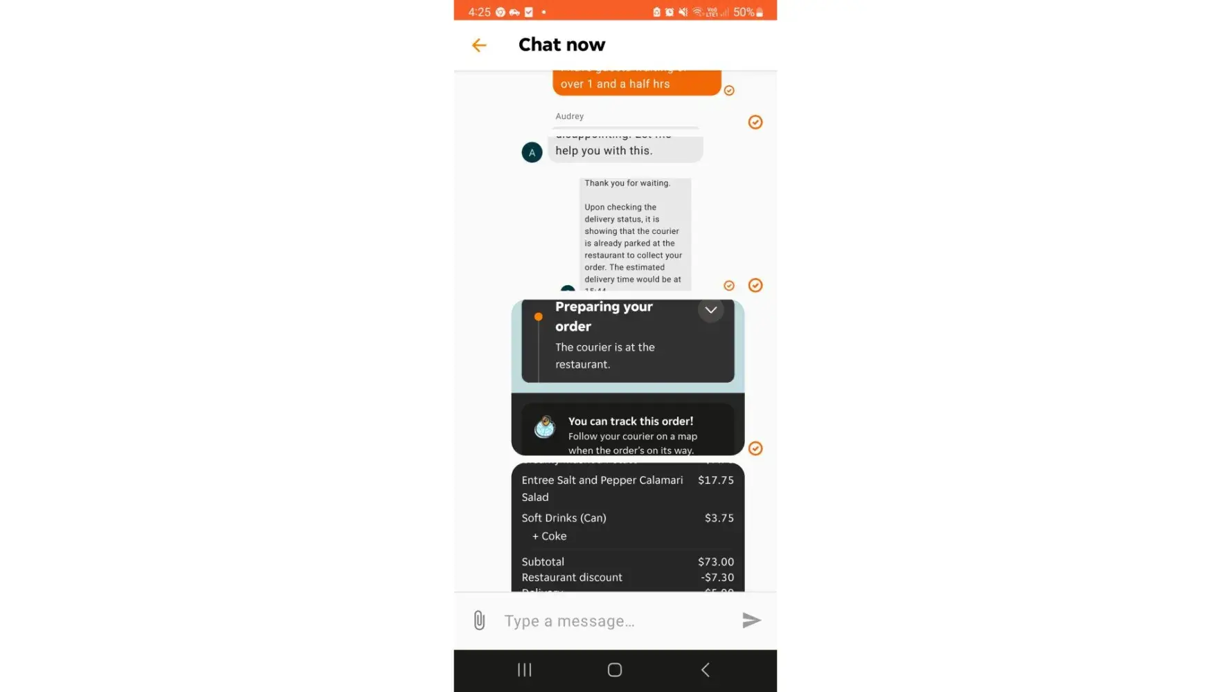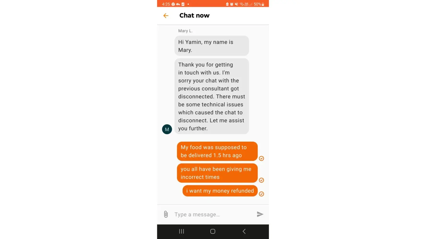 I ordered food on menulog which was showing estimated delivery time 3.00 pm to 3.20 pm after it was past delivery time, I looked for assistance on the menulog chat which was a horrific experience as to how they trat their customers and are literally stealing money. An agent advised their courier was waiting at the restaurant Swat 75, as the restaurant was still preparing my order. The agent adv delivery time has been delayed to 3.45 pm now. After 3.45 pm foor did not arrive, I seeked help to menulog chat this time to be advised my food will arrive at 4.07 pm my food never arrived hence I msged again and was advised my food will come at 4.30 I never got any furter assistance or a refund do not know where my food or money is the agent were very rude and said they will not offer me my refund or give my money back. i have screenshots of all conversations.