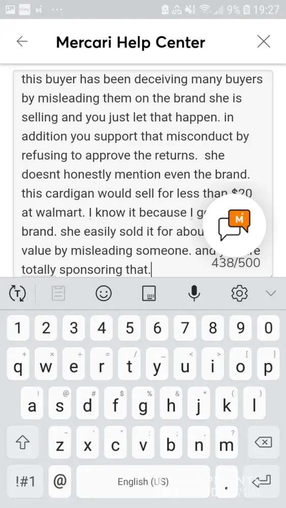 I purchased an item on mercari on 11/09/2019. Item was listed as brand: "Johny Was ". However I received a different brand which is of a cheaper material. I feel like I was tricked by the seller ( who lied about the brand) into buying a product. Seller didn't make any mention of the real brand of the item. The item brand is "style & co " but they listed it as "Johnny was" (which is what I thought I was buying). The item was received on 11/13/2019 and I filed a return claim with Mervari the same day. Mercari answered me saying that the item cannot be returned. I am very checked to see that this app is actually encouraging scammers. I checked the reviews of the seller I purchased the item from and I noticed that this was not her first attempt to scam buyers. She previously listed items with brands (more expensive) that were in reality different from the actual item brand (cheaper). for instance the brand "free people" is not the same as "forever 21". This seller is a true scammer and not only she should be banned from selling on Mercari, but surprisingly Mercari is encouraging her to scam innocent buyers. the policy of mercari says that the item description has to be as specific as possible especially when you list the brand, because that's what buyers look for in filters. I though I purchased a "Johny was" cardigan but I received a "Style &Co" instead. And Mercari sided with the scammer and took my money. I paid $34 plus $5.25 shipping. in addition to that the item looks old and wellworn. with lots of white spots on it. I cannot clean all of that. and there's a piece of thread coming out.