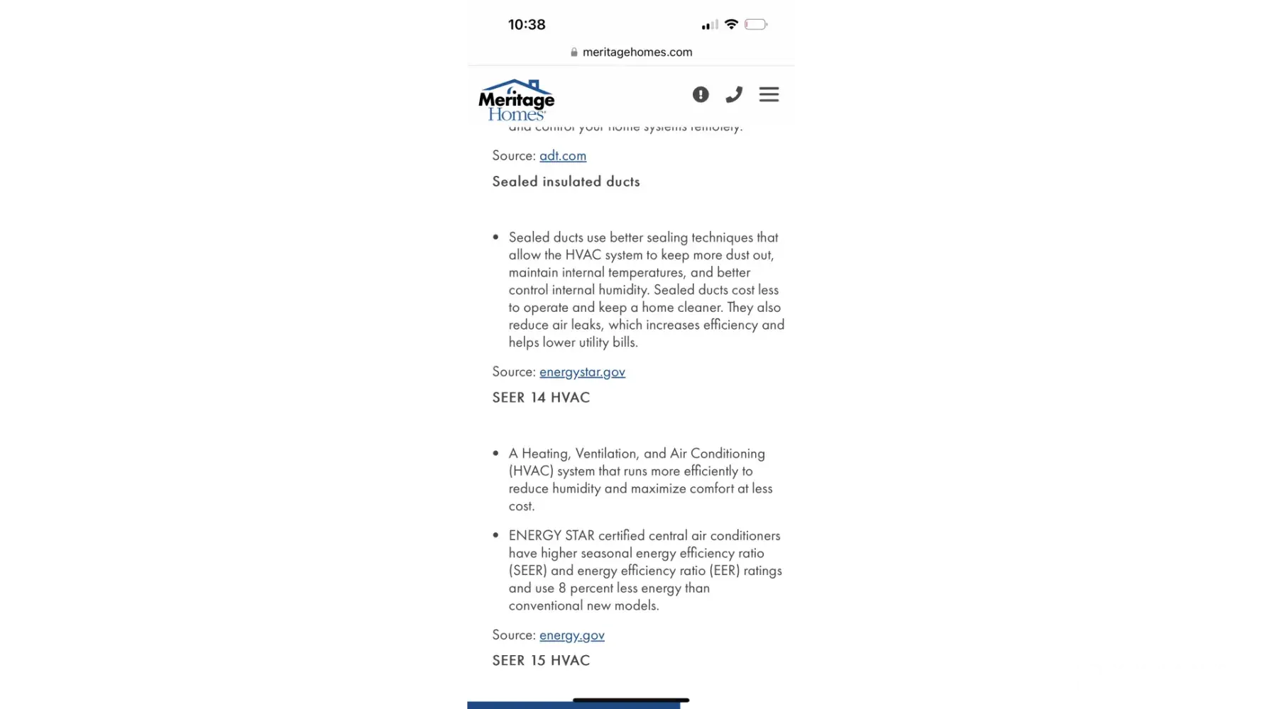 I have attached photos of the ductwork, thermostat and energy information from the website regarding the energy efficient items that come in a meritage home from the website.