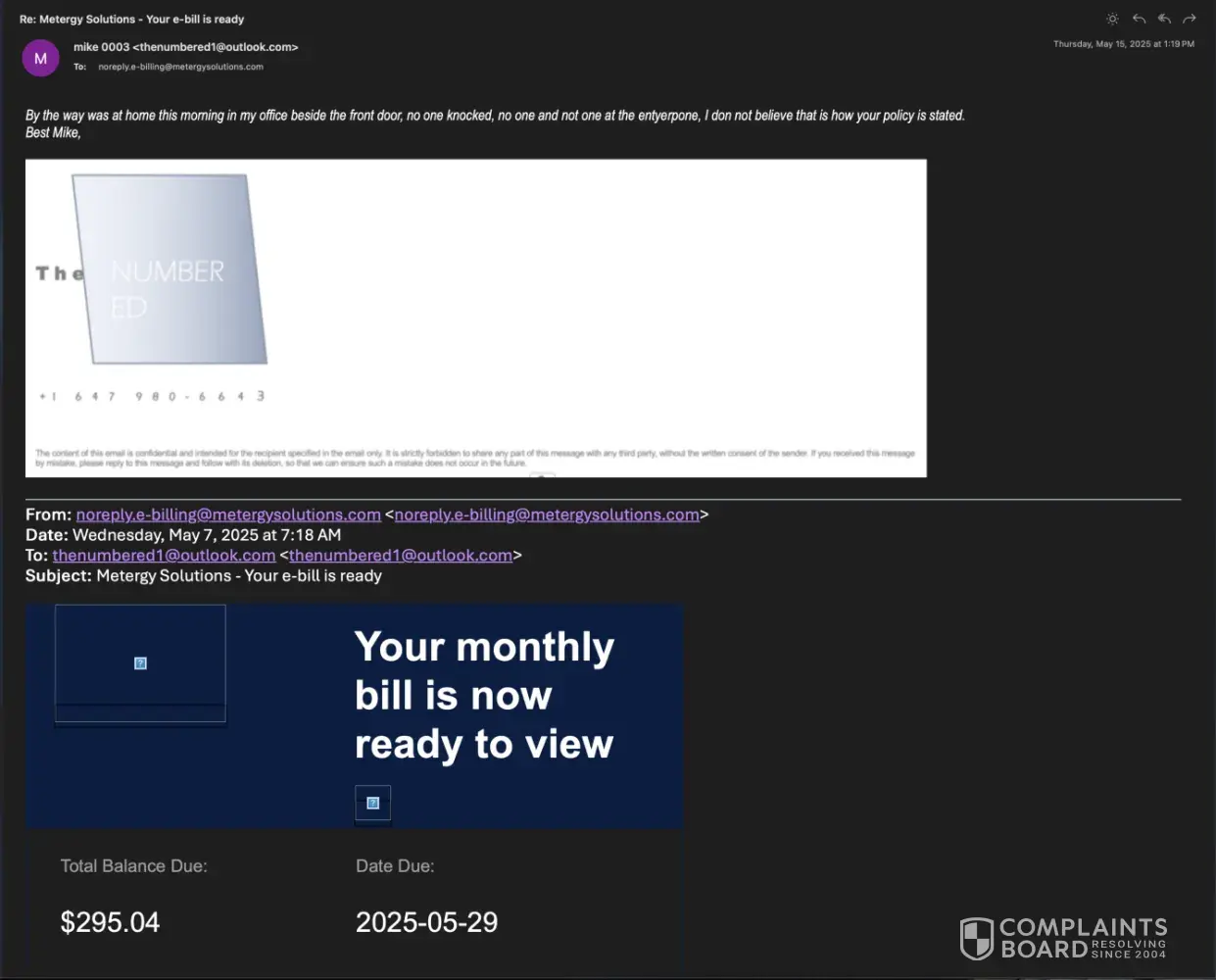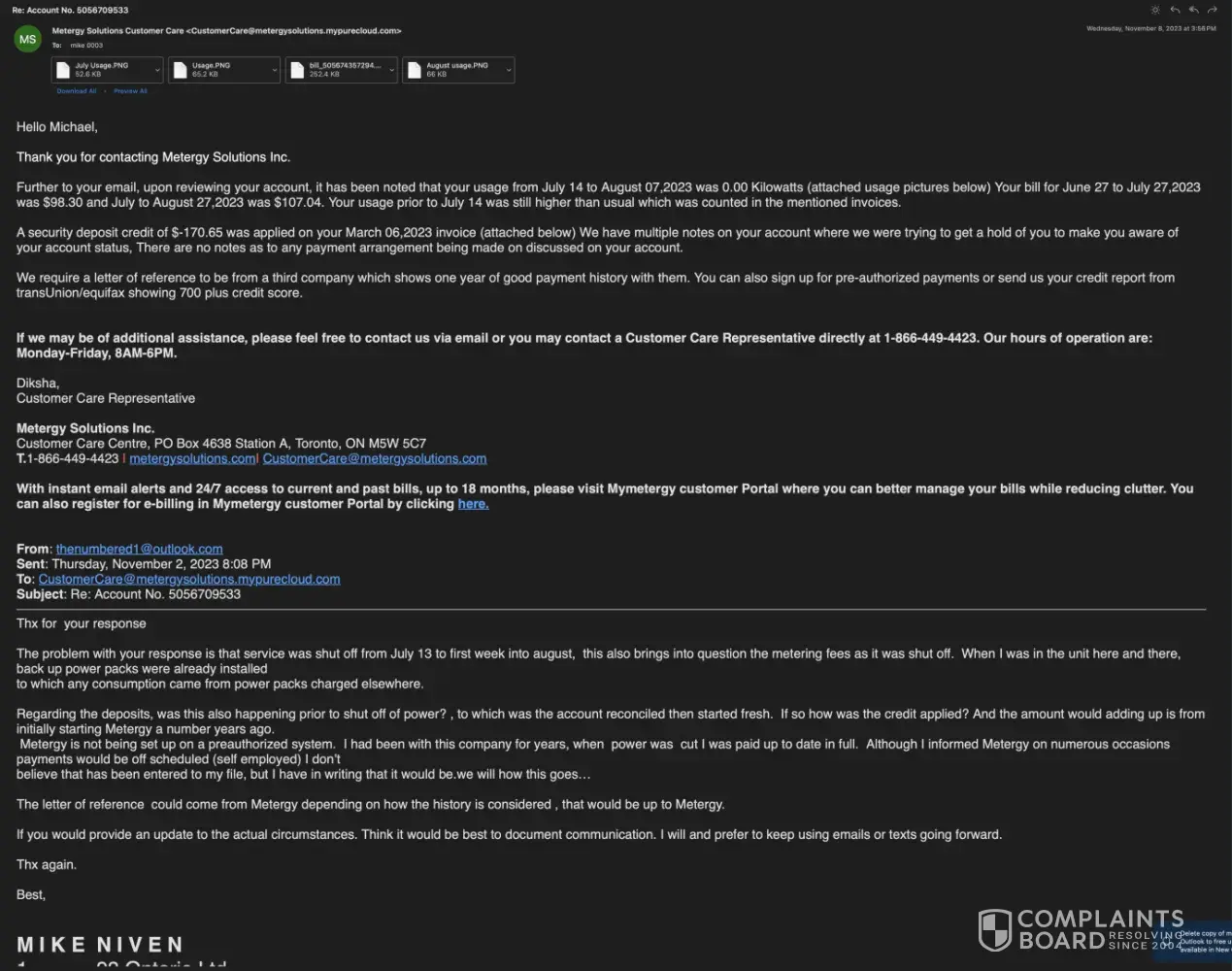 The most frustrating issue is metergy just replied 2 email from my 6 emails. Are they treating this as a complaint? Or I need to escalate to high level?