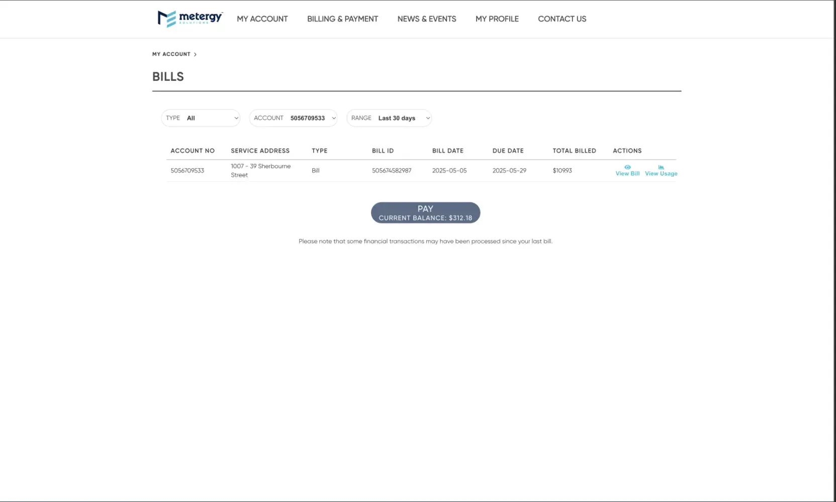 We were forced into using Metergy for our service provider when we moved from a house to an apartment downtown Edmonton. We noticed that the amount we were being charged for water usage was insane. More than what we were paying for a 3000sft house with a yard to water. The customer service was not helpful at all. Stated that the bill is correct and to check...