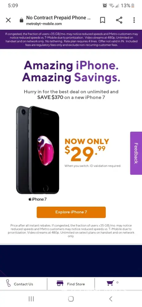 April 30th, 2020 I called the store to see if the iPhone I seen on website was available. Whitney the store manager said for $ 99.00. I said iPhone 7 was on the website for $29.00 with a switch. She said no there is not. I said I am looking at it she said no there is not. I just hung up. She is rude, costumer service bad, I always have problems with her...