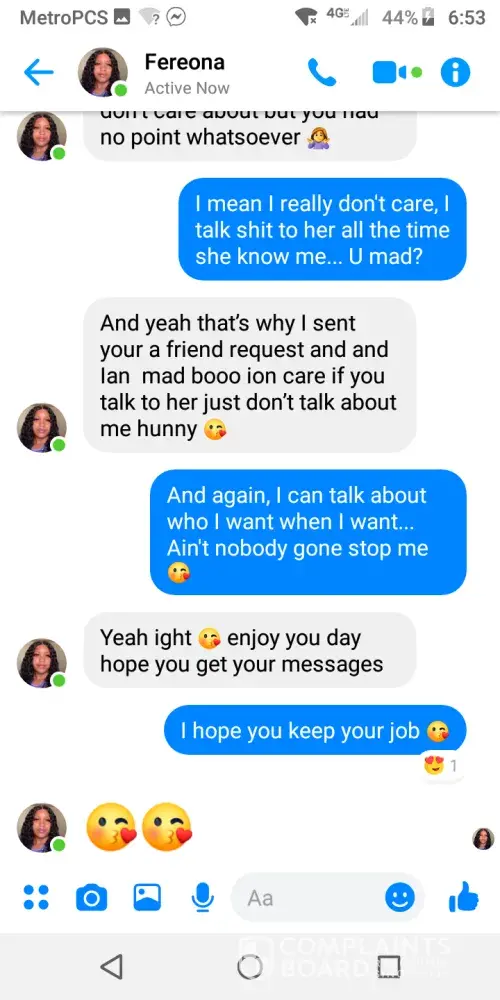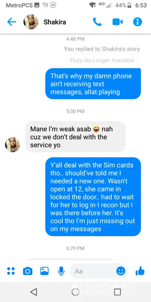 I visited the store on 7/18/2019 to temporarily switch my phone over to an old device because one had broken. Fereon was the representative that day so when I figured I wasn't receiving messages from certain ppl, I went back today 7/21/2019. Store was supposed to open at 12, no one was in. She pulled up late and locked the door, but I found out she had to...