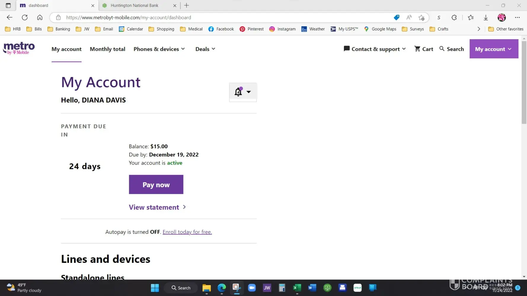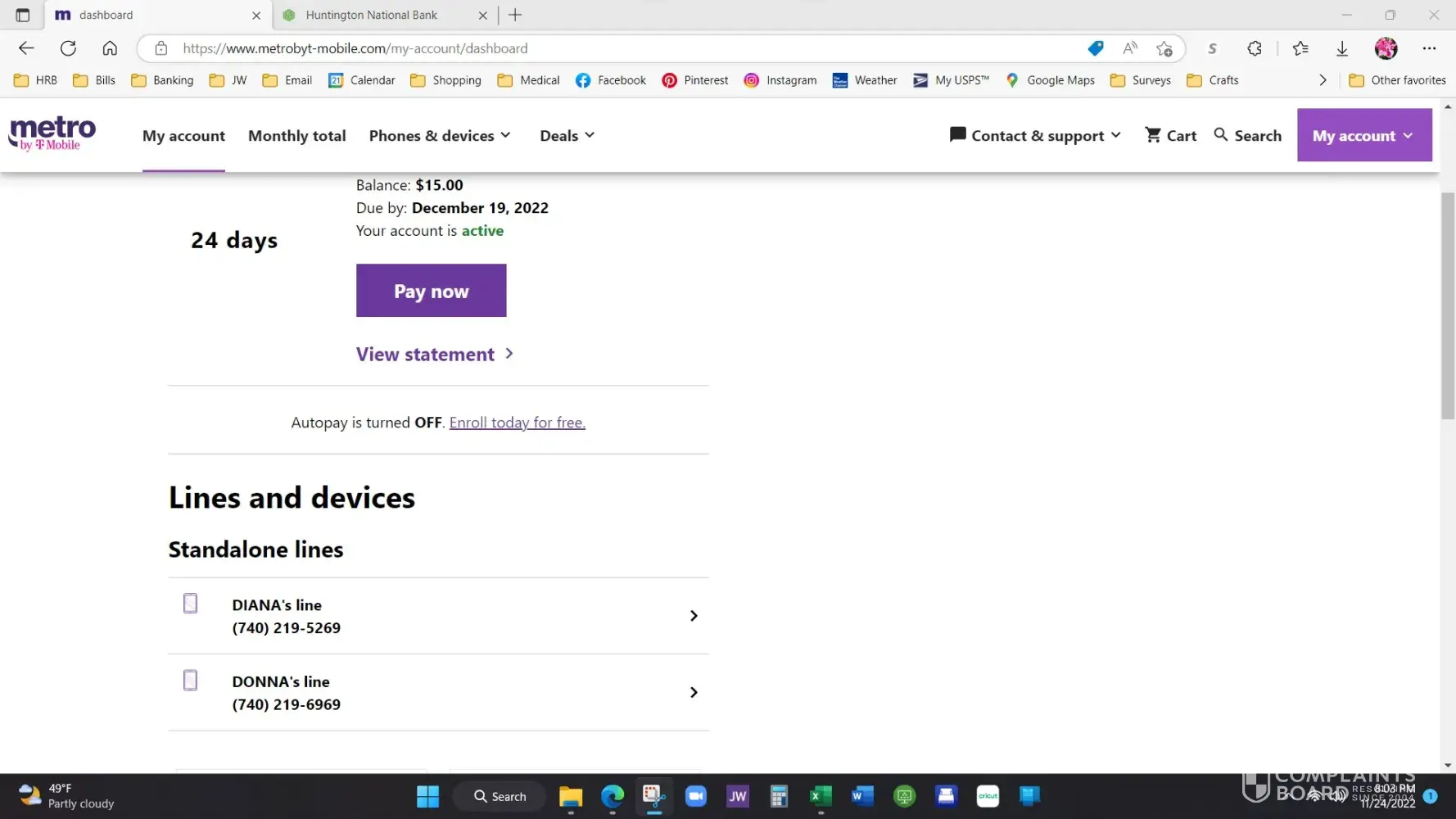 f. Billing statements are only available for the past three months. After realizing this, I began saving the statements starting with the October 2022 statement.