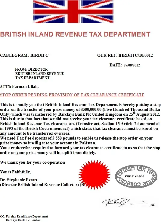 already i have cheated by the fake lottery agents about 135800 + 18800 INR. in that the Foreign exchange administration malaysia cheated from me 135800INR as administration fees. now the inland revenue board of malaysia instructed me to pay 528580INR as non resident tax. but i am very confused that... was i guided by the original surveillance unit or fake.