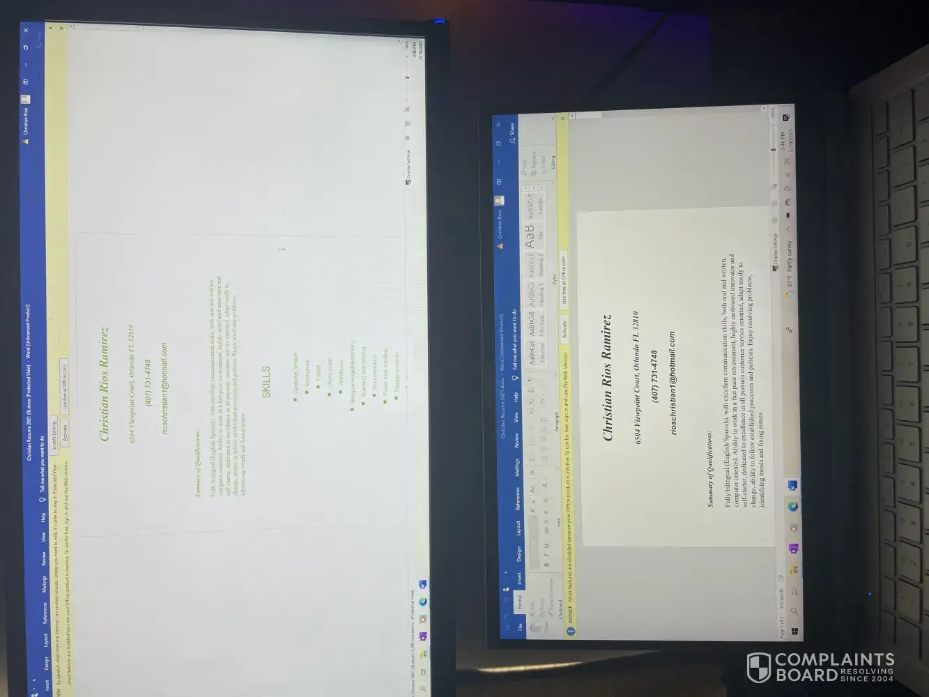 Microsoft keeps changing my font color to green every time I download a copy to my computer. It's becoming so hard to find a job because of this issue. The picture shows the top green save into my Pc with the color green unauthorized by me . This is a very important situation and needs to be escalated for resolution. I have a car payment to meet and I cannot do anything without employment.