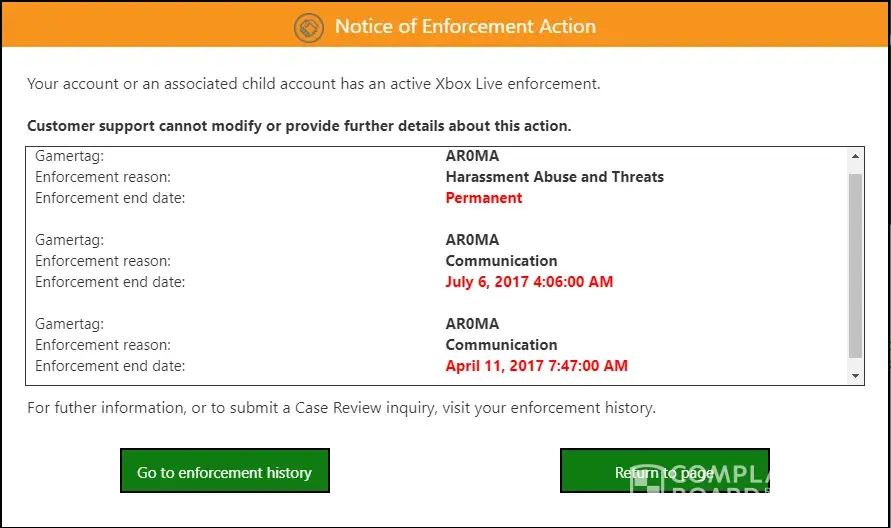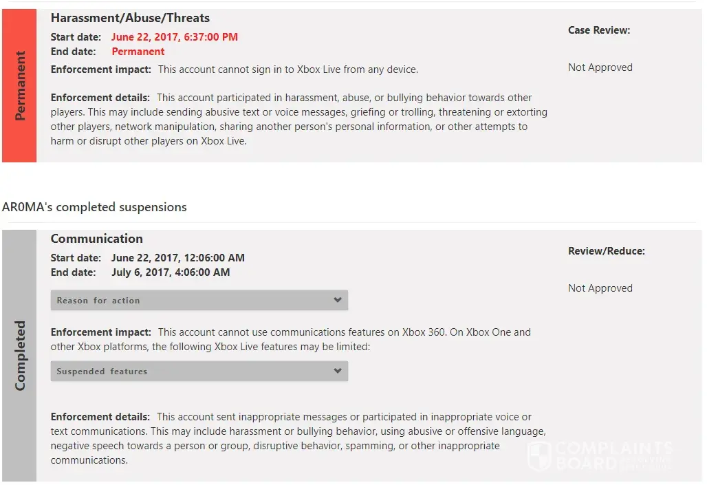 The 1st communication ban was a text message I sent after someone first sent a vulgar message to be and I replied in the same manner but that person reported me having xbox communication ban me.