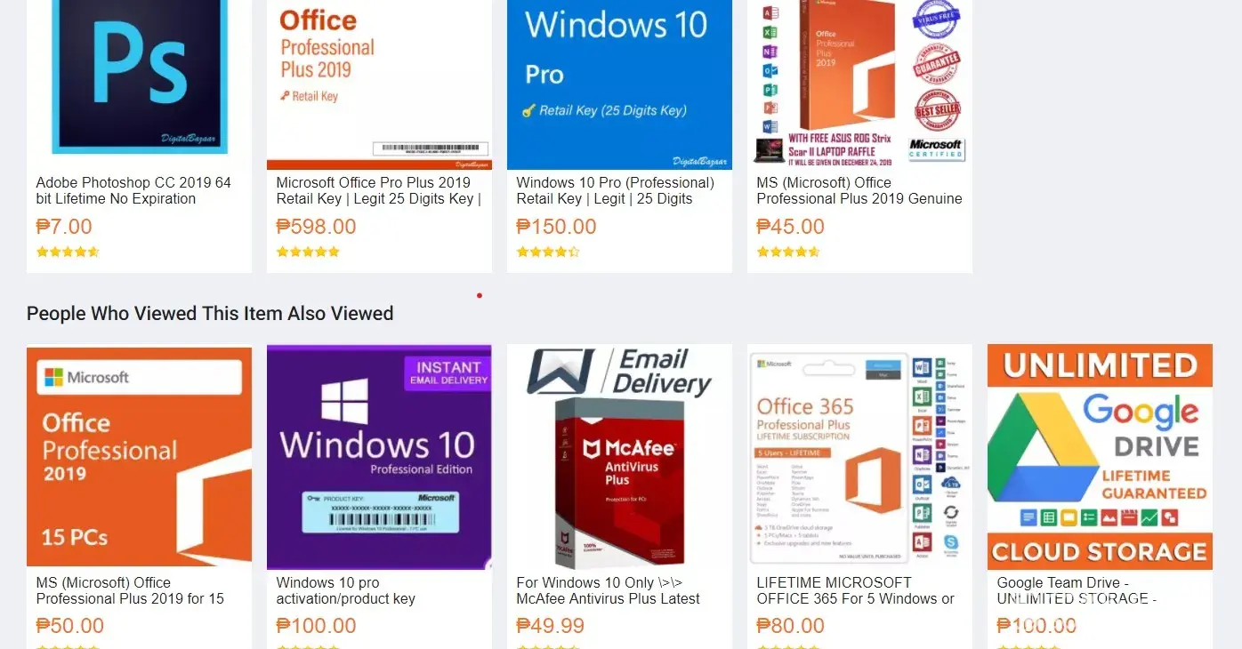 microsoft products being sold on https://www.lazada.com.ph