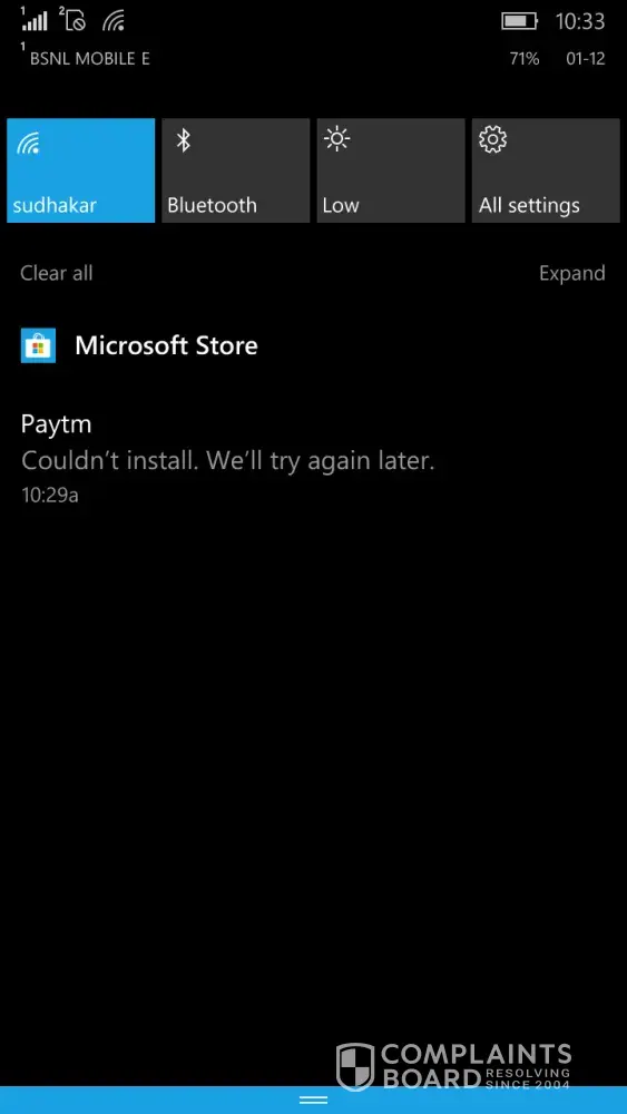 Hi, this is Satish Chary, I'm using Microsoft 540 (Windows 10) mobile 📱. Recently my paytm account was activated, suddenly it showing paytm is unavailable. Ok i uninstall the app & tried reinstalling it is showing Couldn't install. We'll try again later & it is showing error while downloading. Screenshot attached.
