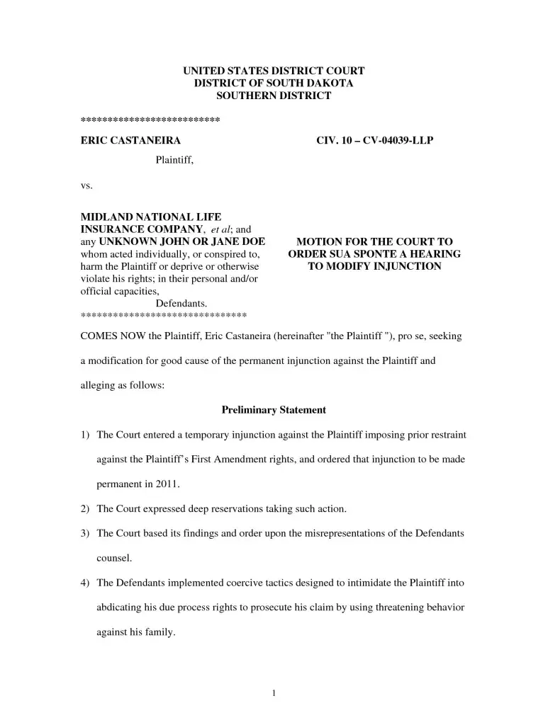 Is that the same Eric Castaneira whose Family was threatened by Midland for blowing the whistle on them? The lawsuit he filed (Castaneira v. Midland National Life Insurance, et al; Civ #10-4039, United States District Court, Southern District of South Dakota) is posted at www.midland-national-life-review.com. Is this the same Castaneira that Midland signed a settlement agreement with and then broke their promise?