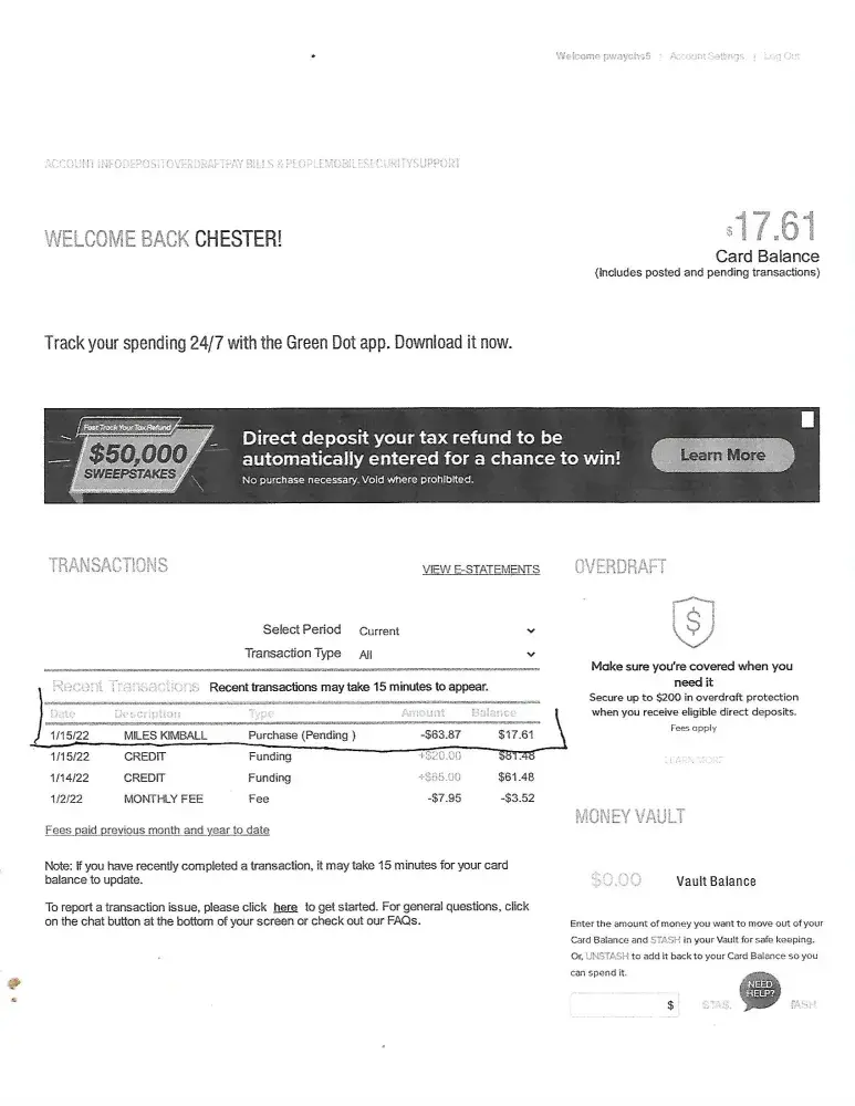 But the Credit Card I used has a pending transaction on it.