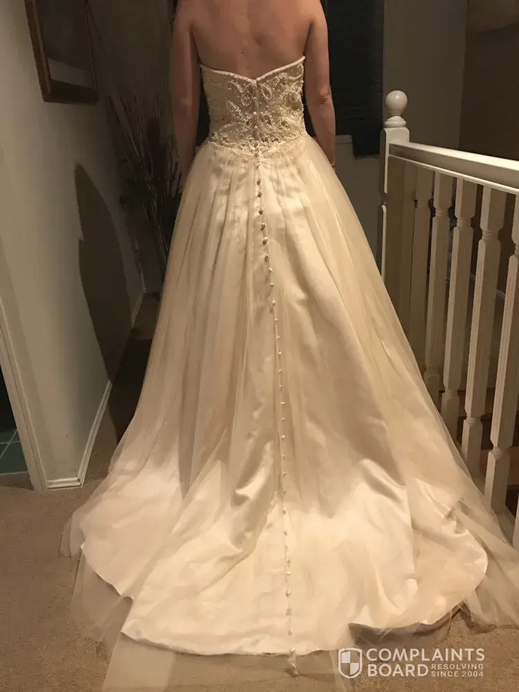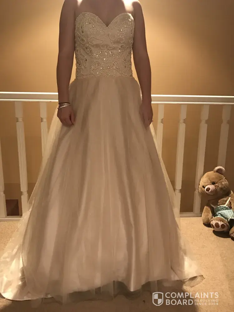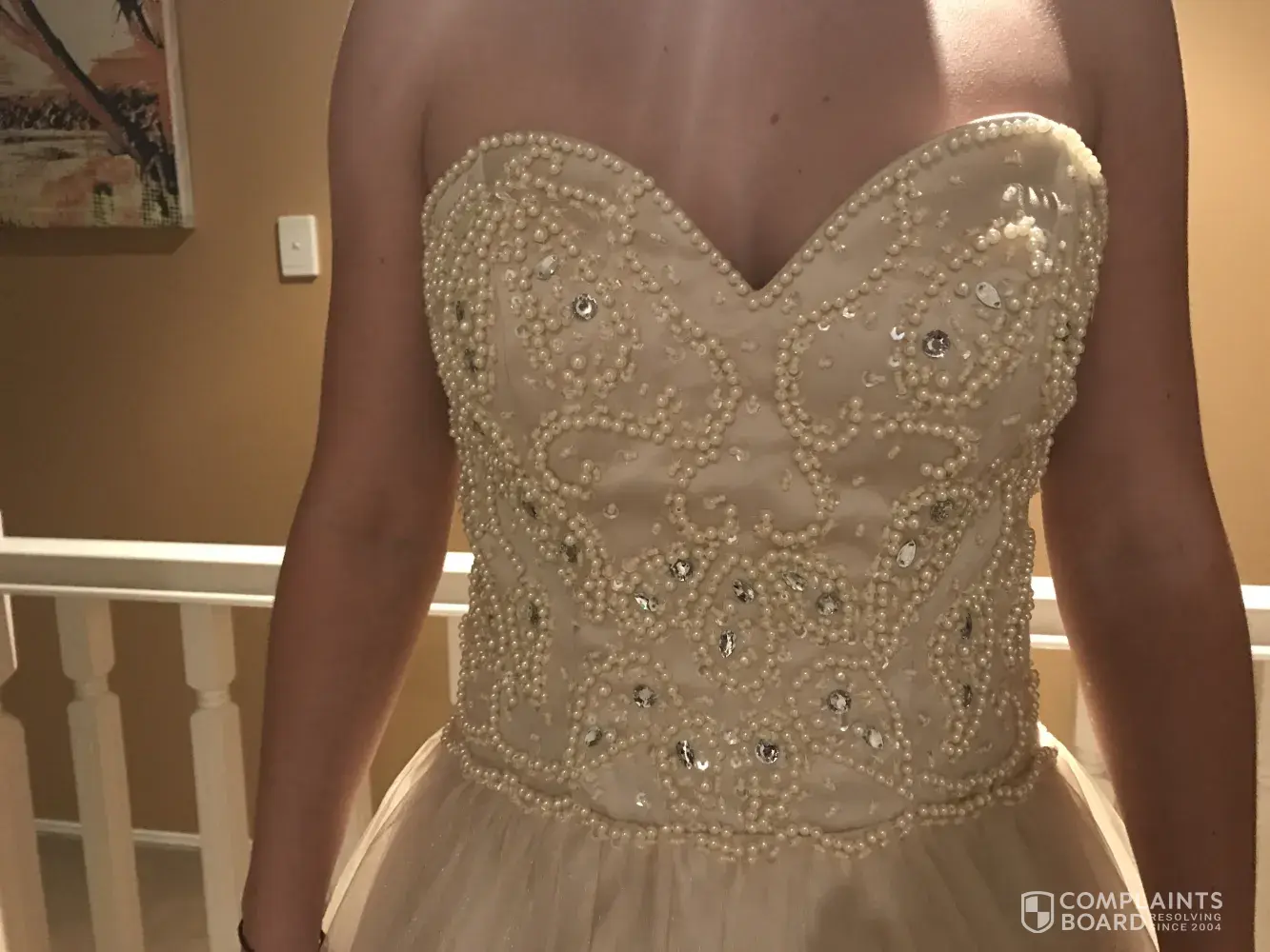 My experience is exactly the same as others. Fell in love with my wedding dress online and didn't read the reviews before buying. Big mistake! The dress arrived, wrong colour, wrong size, cheap beading that was completely different to the photos. I emailed customer service explaining my situation, including photos and the original sizing I had ordered - their refund policy entitled me to a new dress or a refund. I asked for both solutions. They told me to get a quote to get it altered. Which would have cost me $150.00. I asked for the $150 + $30 that it cost to get it altered to "my size". They offered 8% of the dress cost. $320 / 8% = $25.60. Wtf?! I pleaded, threatened with bad reviews. They then offered me 10%. I threatened again. They told me that's all they would offer. So I conceded. Still no refund after 2 weeks of confirming 10% back.