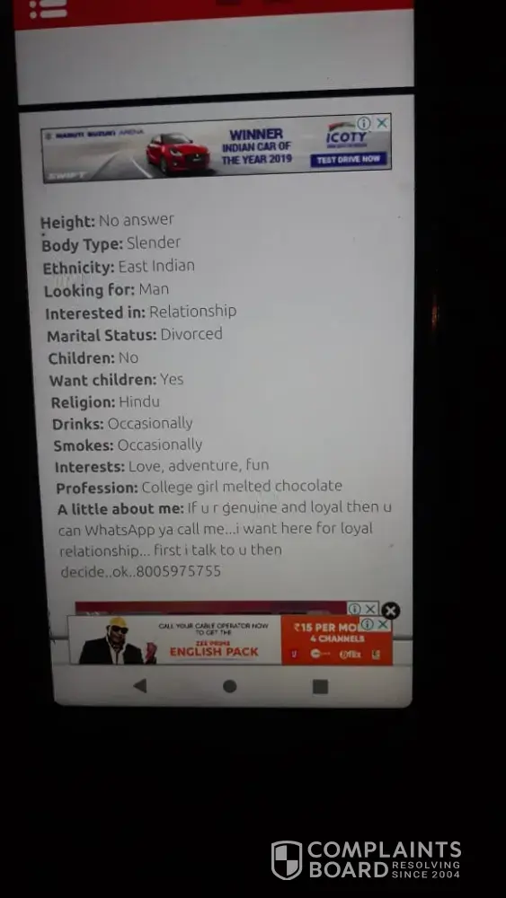 I already paid the amount 1500 and another amount 1000 but aret girl cheating me any girls not coming I have submitted proof that's type of wrong application and cheat and lier I don't like it and that's type of person any girl is coming this my number [protected]