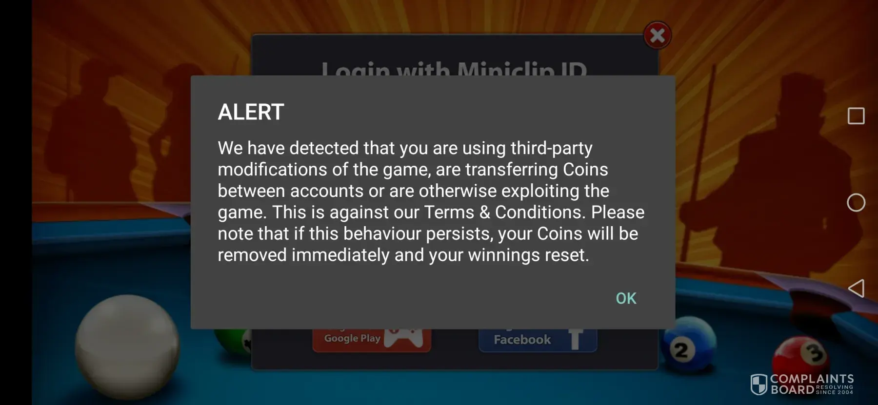 Hello dear Miniclip Team. Hope you will be fine. Dear I am not Using any third party account access in my 8 ball pool game so why you Giving me a warning.? Please resolve my problem as soon as possible. I shall be very thankful to you.