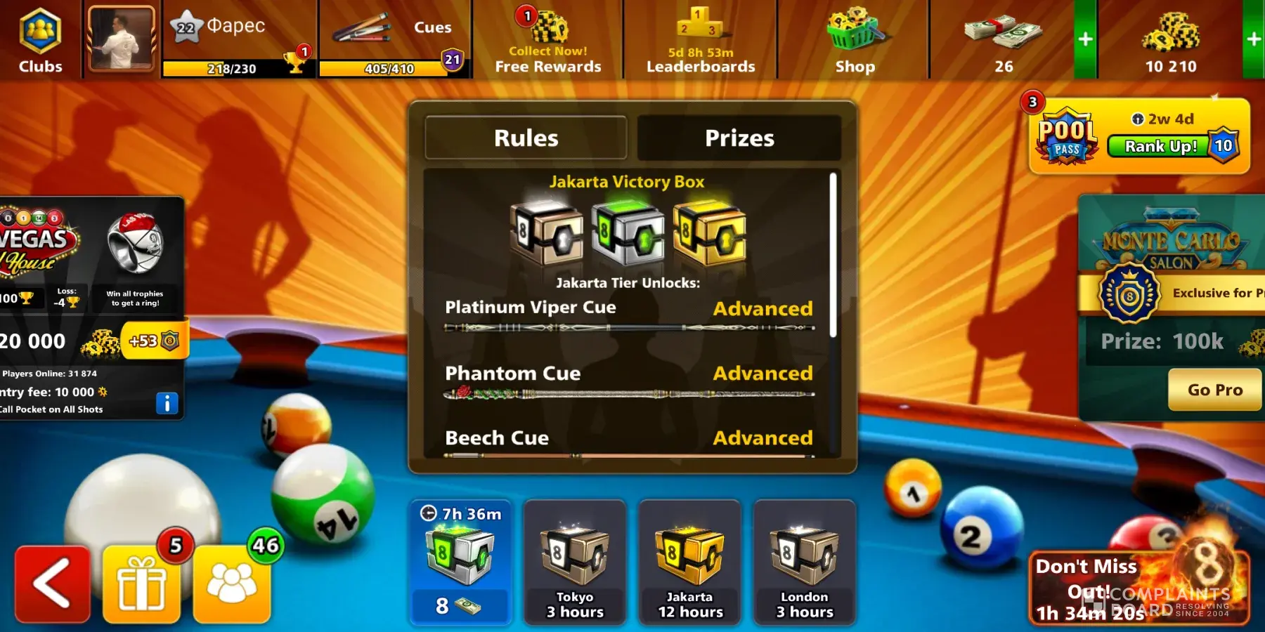 The entire speed pass was taken away from me and all of the winnings that come with it. Cues, Avatars and table decals