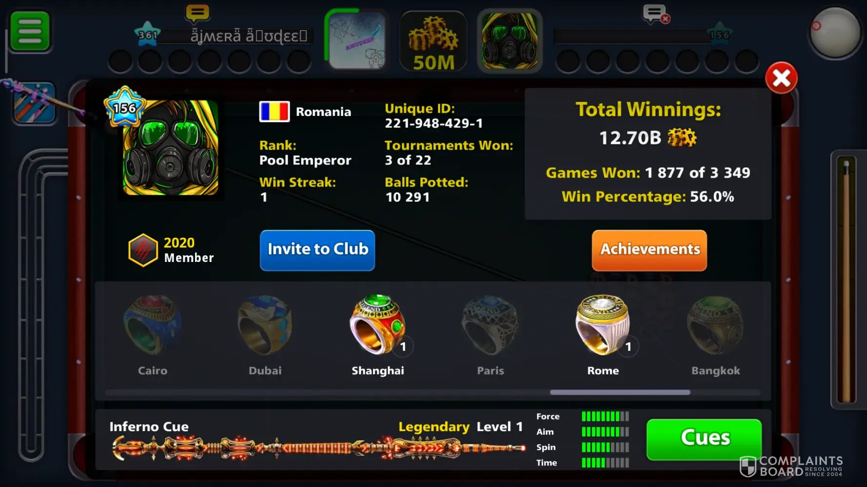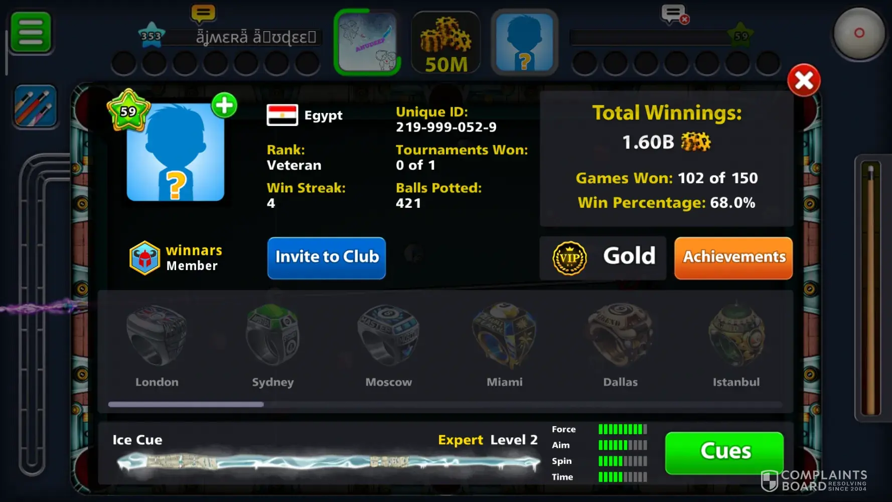 It's getting very irritating with no name players in 8ball pool they are hacking the game whenever connected 8ball game with no name players game automatically minimizing and couldn't win over them because of continue minimizing. Automatically they are winning here iam providing some pictures you can see their account and unique ID's. I suggest u to ban them permanently otherwise we were getting more and more irritation hence that cause delete the 8ball pool