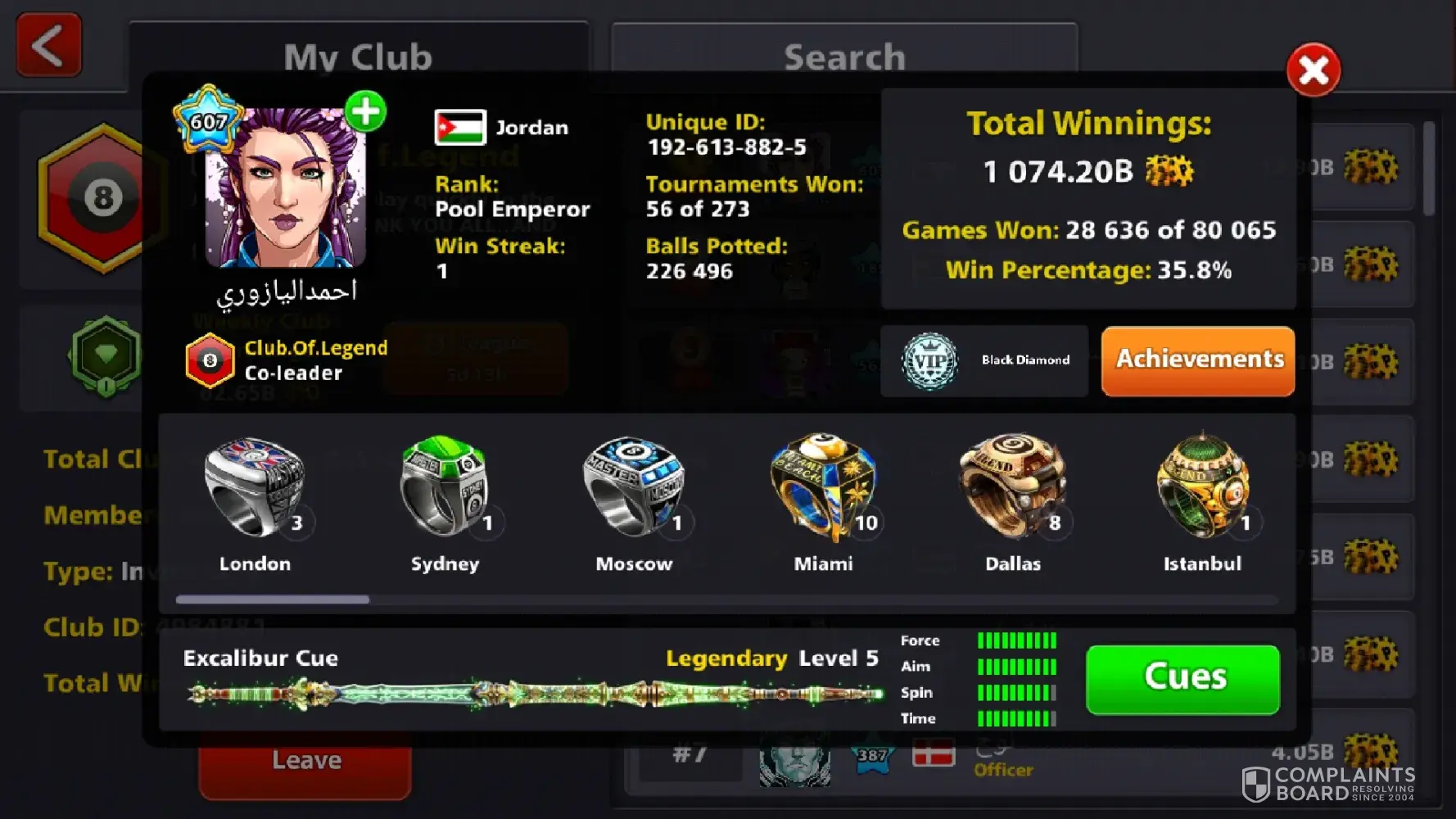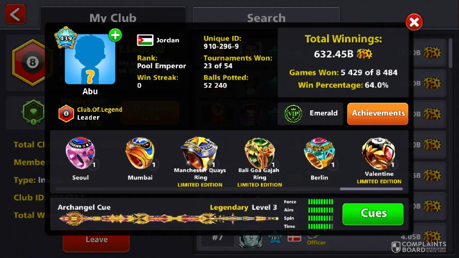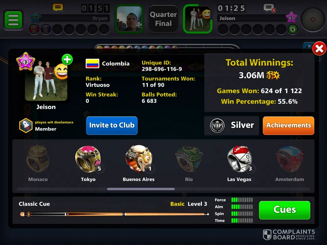 Here I'm informing you about a member in 8ball pool ID 910-296-9 and ID192-613-882-5 has two different accounts in the same club ID 4984881