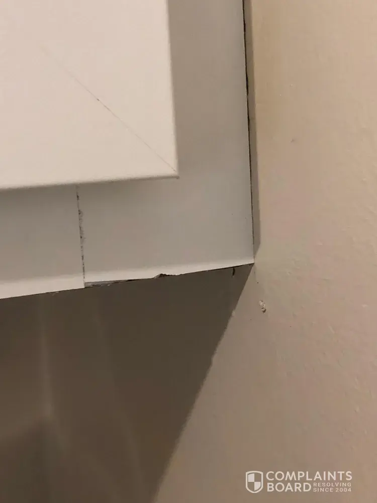 About 11 months later we noticed the bathtub adhesive peeling off of the tub and walls.