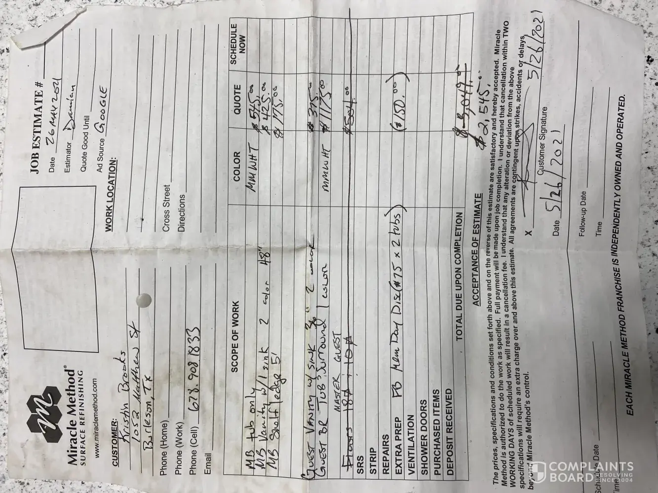 Of interest - We have since found several sites online where consumer reviews & found complaints that spoke to similar situations we were dealing with from across the country: viewpoint.com or complaintsboard.com are two we researched. Enter Miracle Method to find all reviews.