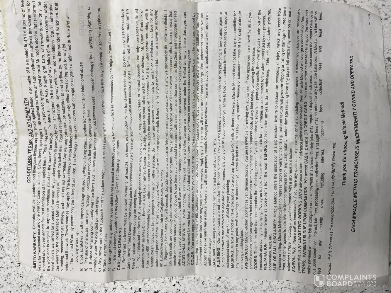 Miracle Method Shoddy workmanship and failure to honor warranty