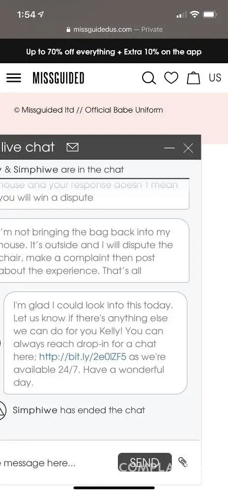 Overall, I wouldn’t recommend Missguided to anyone if this is the kind of service you'll receive. They have a terrible return policy, and their customer service is absolutely useless.