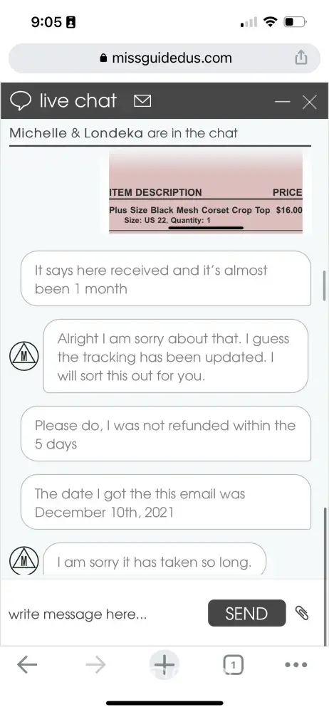 That's when things went downhill. Missguided claimed they never received my return items, even though I had shipped them back with USPS. I was upset because this wasn't the first time a company had pulled this scheme on me. Previously, I had a similar issue with sexydresses.com. This time, I was savvy enough to keep my USPS receipt and tracking number. I promptly emailed it to Missguided. Despite doing everything by the book, I still haven't received reimbursement for my returned items.