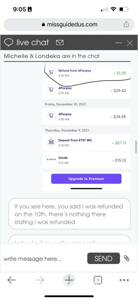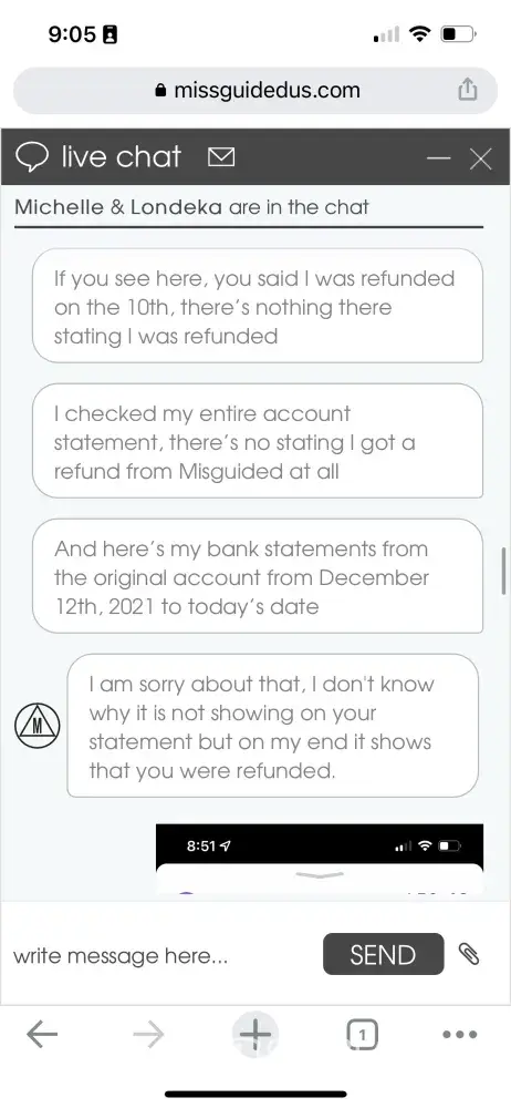 I was like no, I did not get my refund to my original payment and showed her screenshots of my bank statements to the 10th which she said it was refunded on. I then screenshot my entire bank statements from Dec 10th, 2021 to today and all she kept saying was sorry that on her end it says payment processed.