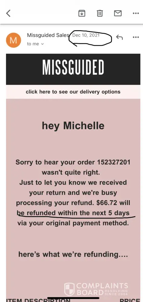 Read full complaint37 Missguided Complaints