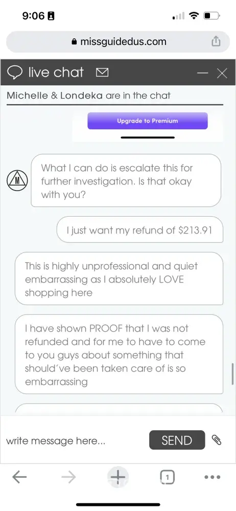 She said she can escalate a further investigation and at this point I'm already mad [censored] hell. I understand that this isn't technically her fault but the fact I had to go and ask for my money is so embarrassing for the company as a whole. If I waited and did not keep track (it's $200 worth of money, I [censored]ing better) I would've never gotten the money. She apologized about the taking long to reply but was not genuinely sorry, she also said to wait ANOTHER 5 business days for someone to email me about the inquiry.